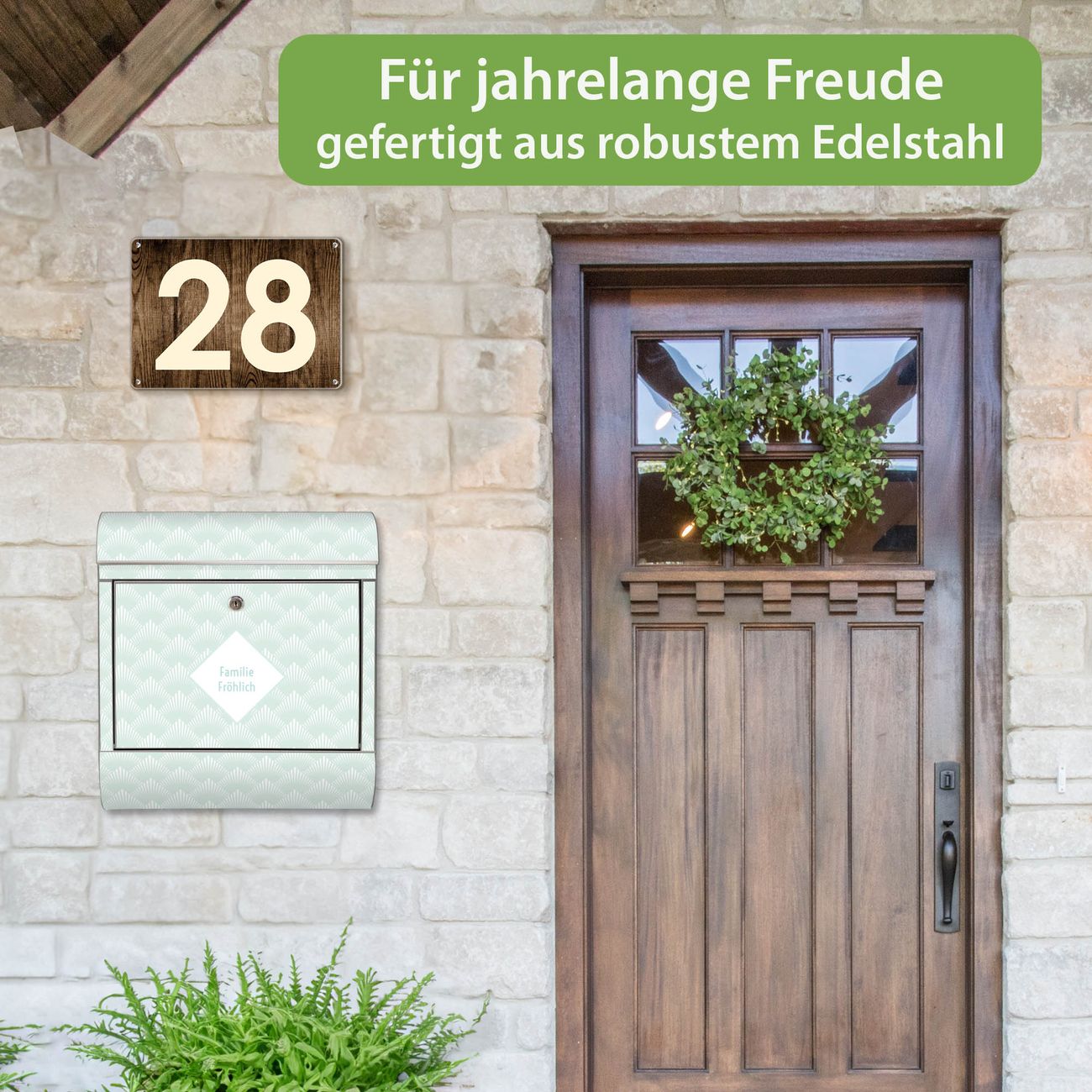 FUNKTION: Der banjado Edelstahl Briefkasten mit Motiv Motiv Strahlen Mint bietet Ihnen mit seinem Fassungsvermögen genügend Platz auch für große A4 Sendungen. Das integrierte Zeitungsfach eignet sich hervorragend um unkompliziert die Tageszeitung zu fassen. Auf Wunsch können Sie bei uns den passenden Ständer kaufen und so aus dem Wandbriefkasten einen Standbriefkasten machen. DESIGN: Der Motivbriefkasten hat ein sehr ansprechendes und ausgefallenes Design, damit entlocken Sie Ihren Nachbarn und dem Postboten ein Lächeln. Heben Sie Sich ab von der tristen grauen Masse ohne auf Funktionalität zu verzichten. DETAILS: Der Design Briefkasten mit Motiv Motiv Strahlen Mint besteht aus hochwertigem 18/0 Edelstahl. Das Motiv besteht aus einer wetter- und UV-resistenten Folie, die mit einem Schutzlaminat überzogen ist. Der Briefkasten wird mit Montagematerial und zwei Schlüsseln geliefert. NUTZEN: Sie können diesen Briefkasten sowohl als Wandbriefkasten montieren oder einen passenden Ständer auswählen und als Standbriefkasten einbetonieren. Die Größe bietet genügend Platz für Sendungen aller Art, das hochwertige Edelstahl ist rostfrei und die Motivfolie absolut wetterfest. SCHUTZ: Um Ihre Post optimal vor Witterungseinflüssen wie Starkregen zu schützen, empfehlen wir, den Briefkasten geschützt anzubringen. BANJADO: Ihr Briefkasten wird in Sachsen in einer kleinen Manufaktur von Hand veredelt. Die Motivfolie ist lösungsmittelfrei und schutzlaminiert, dies sorgt für einen langen Halt. Wir legen großen Wert auf die Verbindung von Funktionalität und Design. Sie erhalten Handarbeit aus Sachsen.