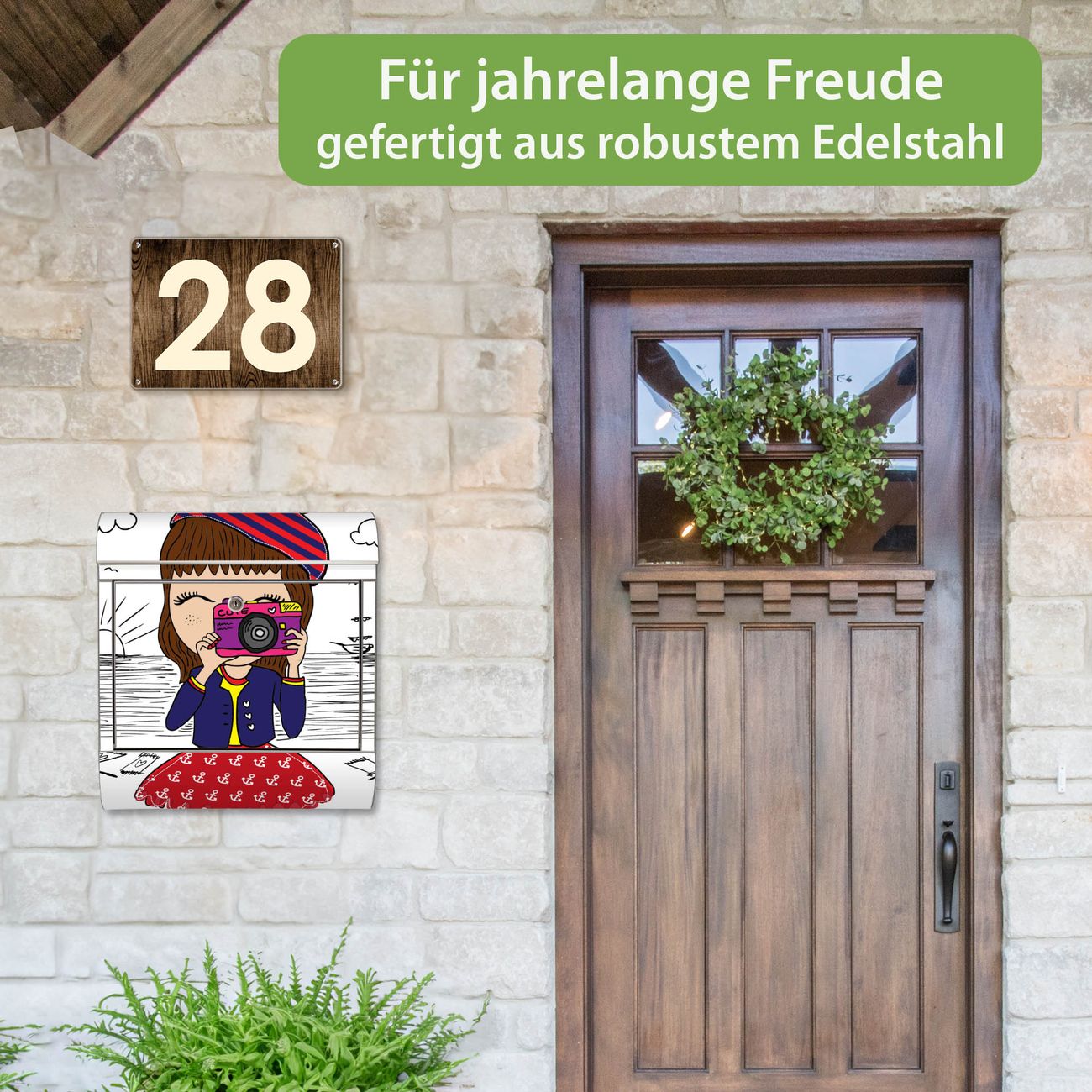 Wandbriefkasten Edelstahl Motiv Süße Kamera