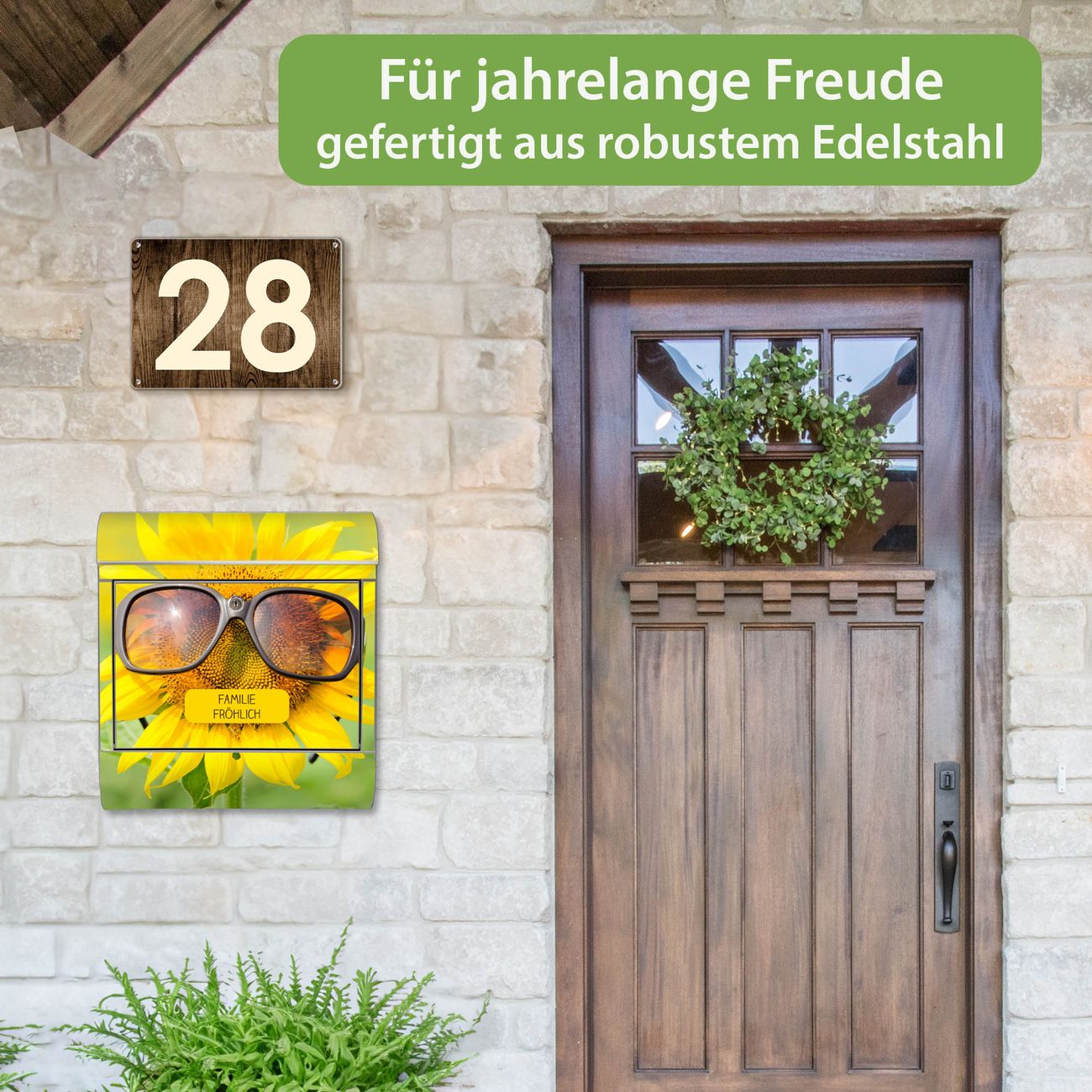 Wandbriefkasten Edelstahl Motiv Sunny
