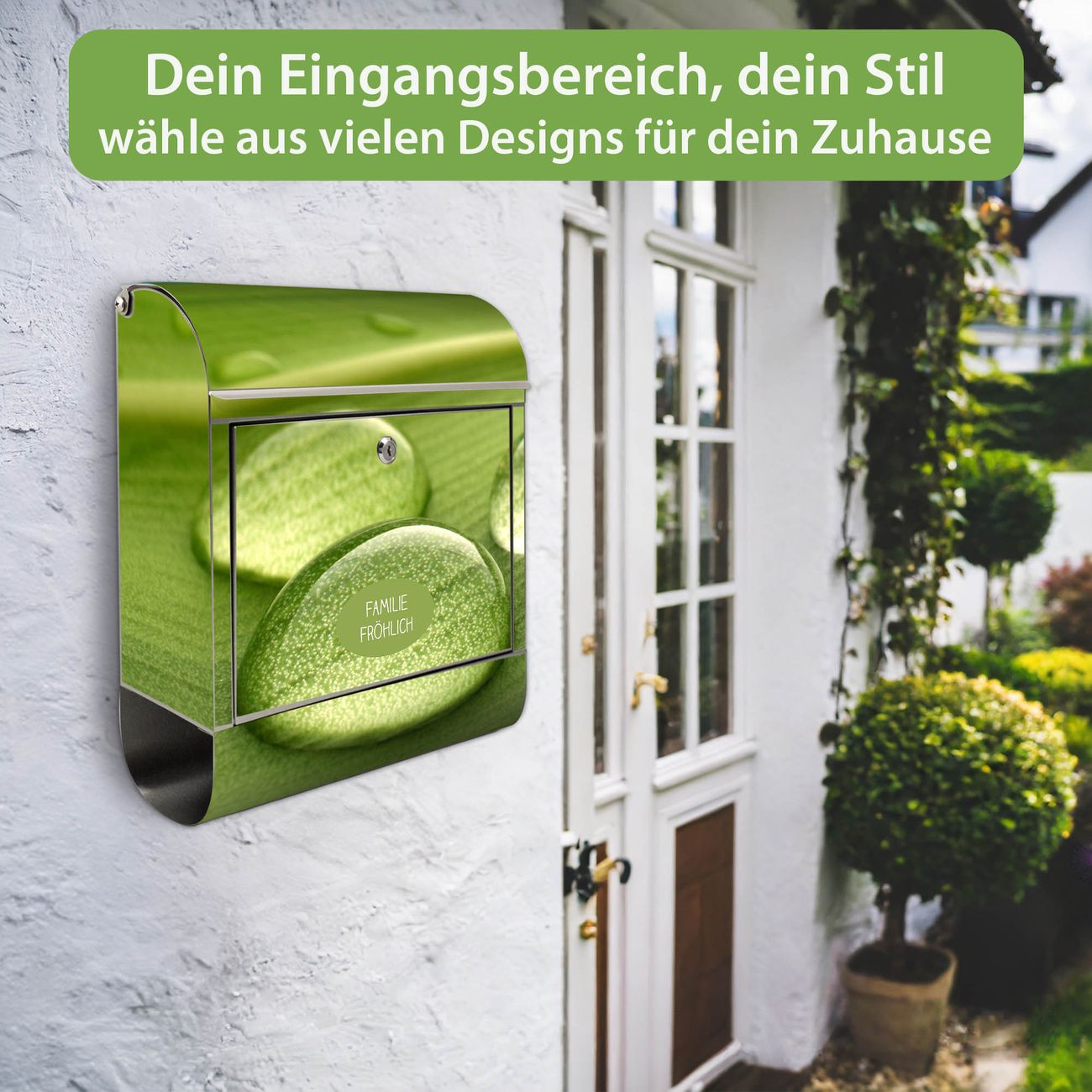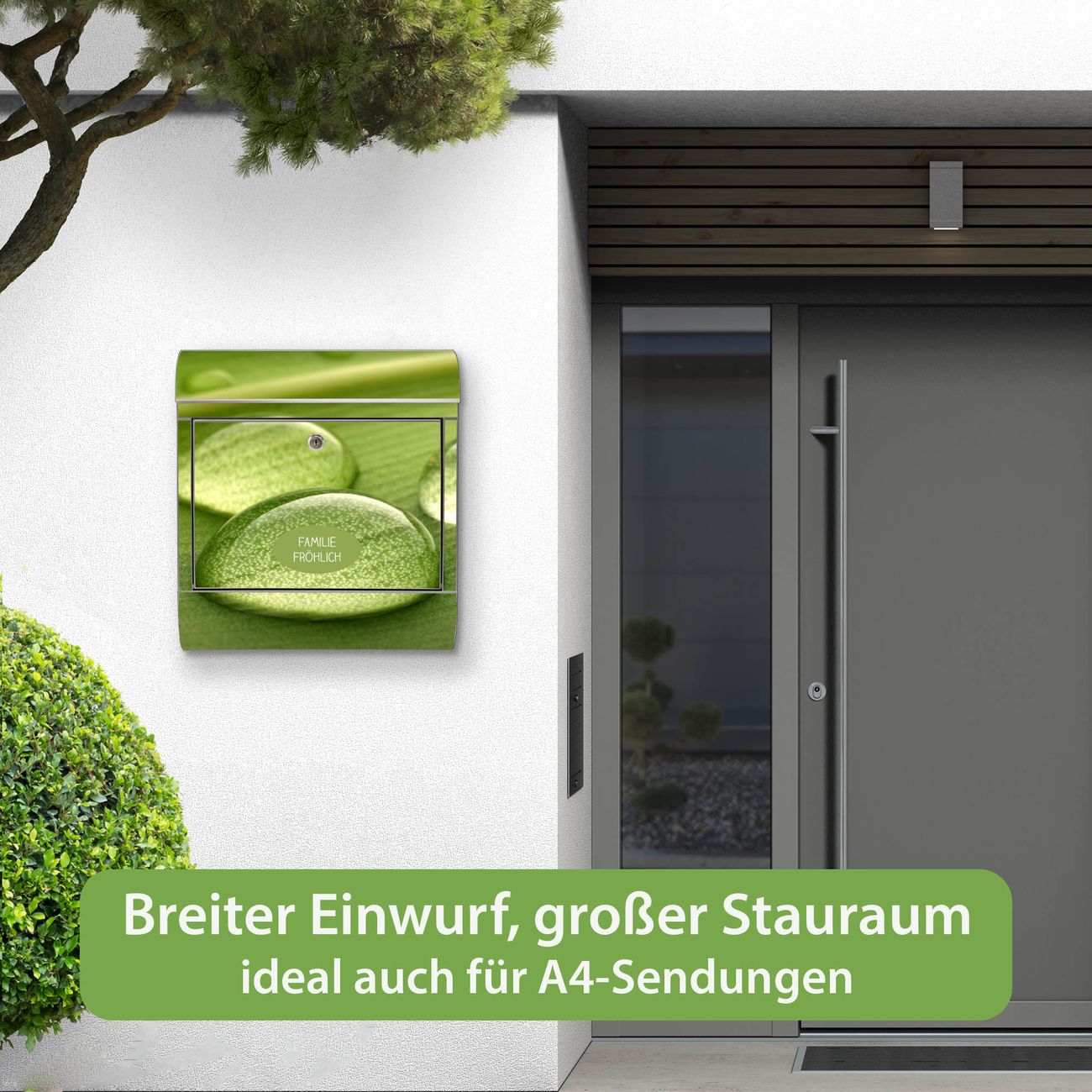 Wandbriefkasten Edelstahl Motiv Tautropfen