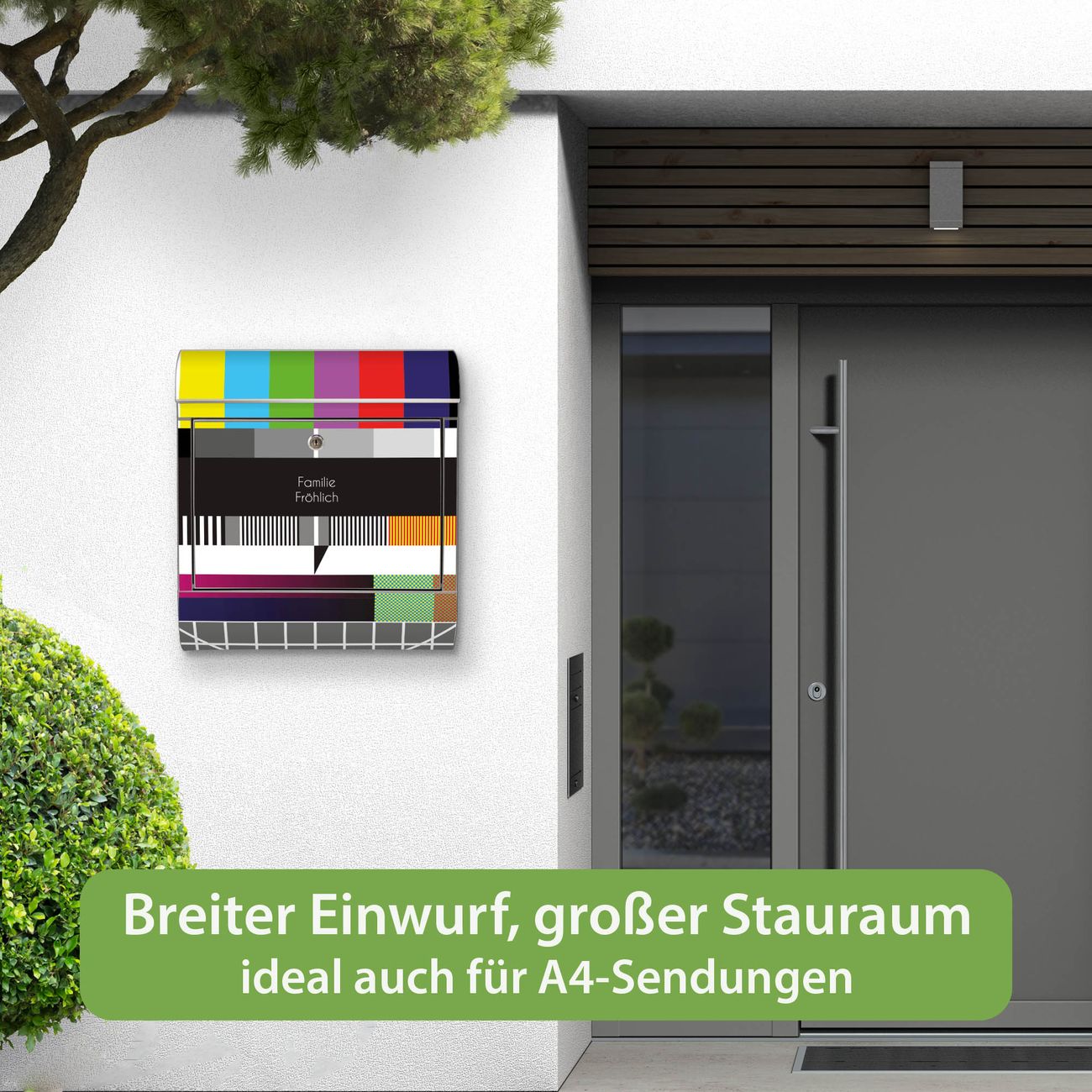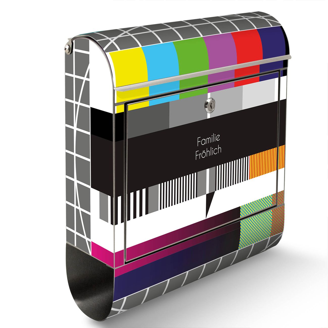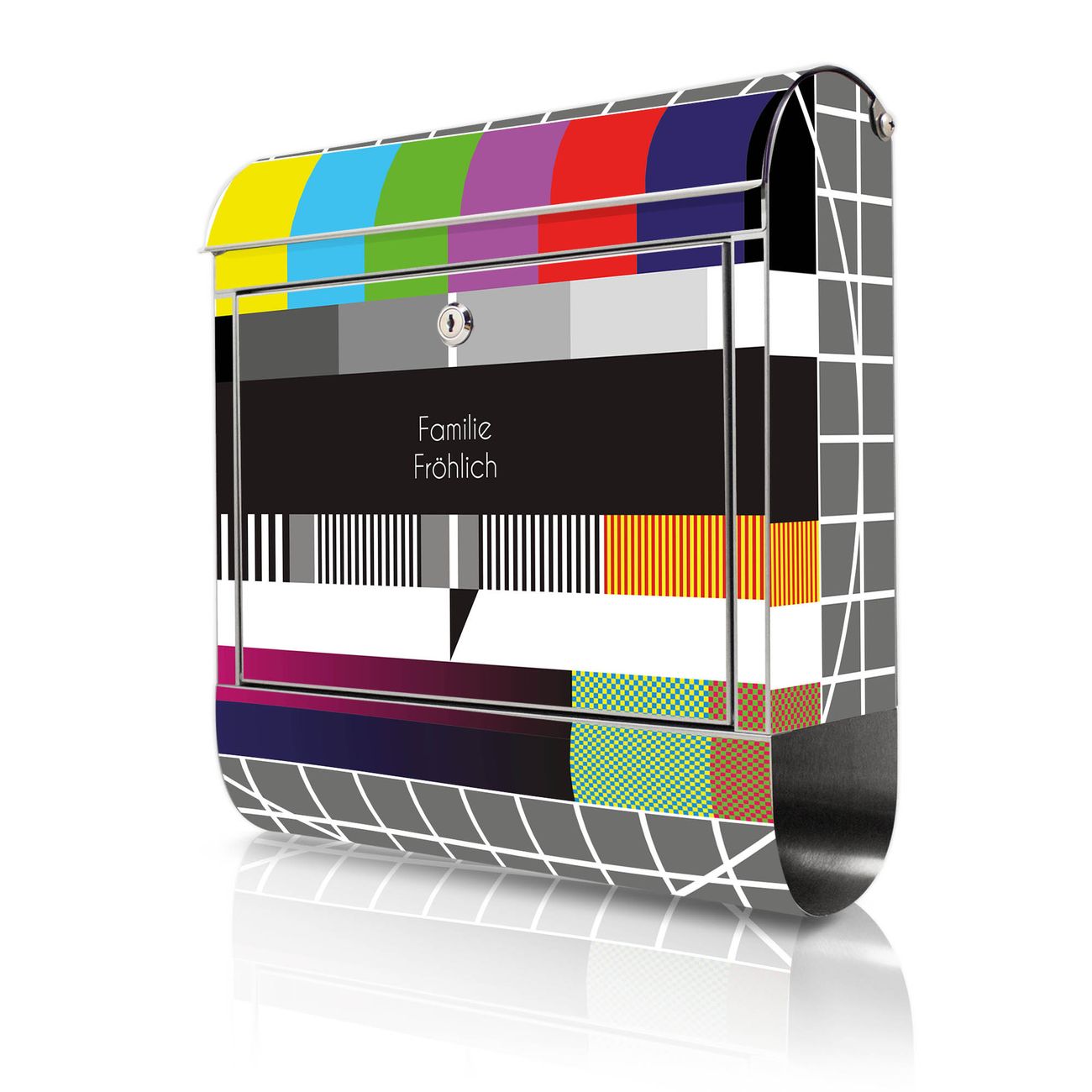 Wandbriefkasten Edelstahl Motiv Testbild