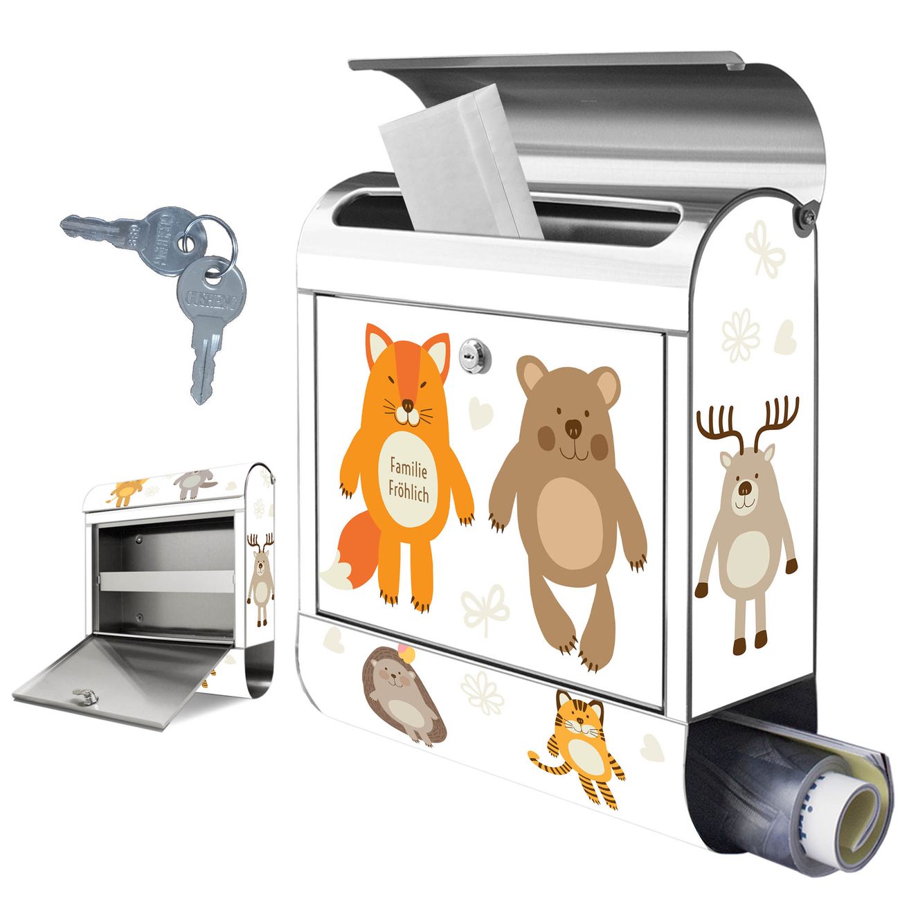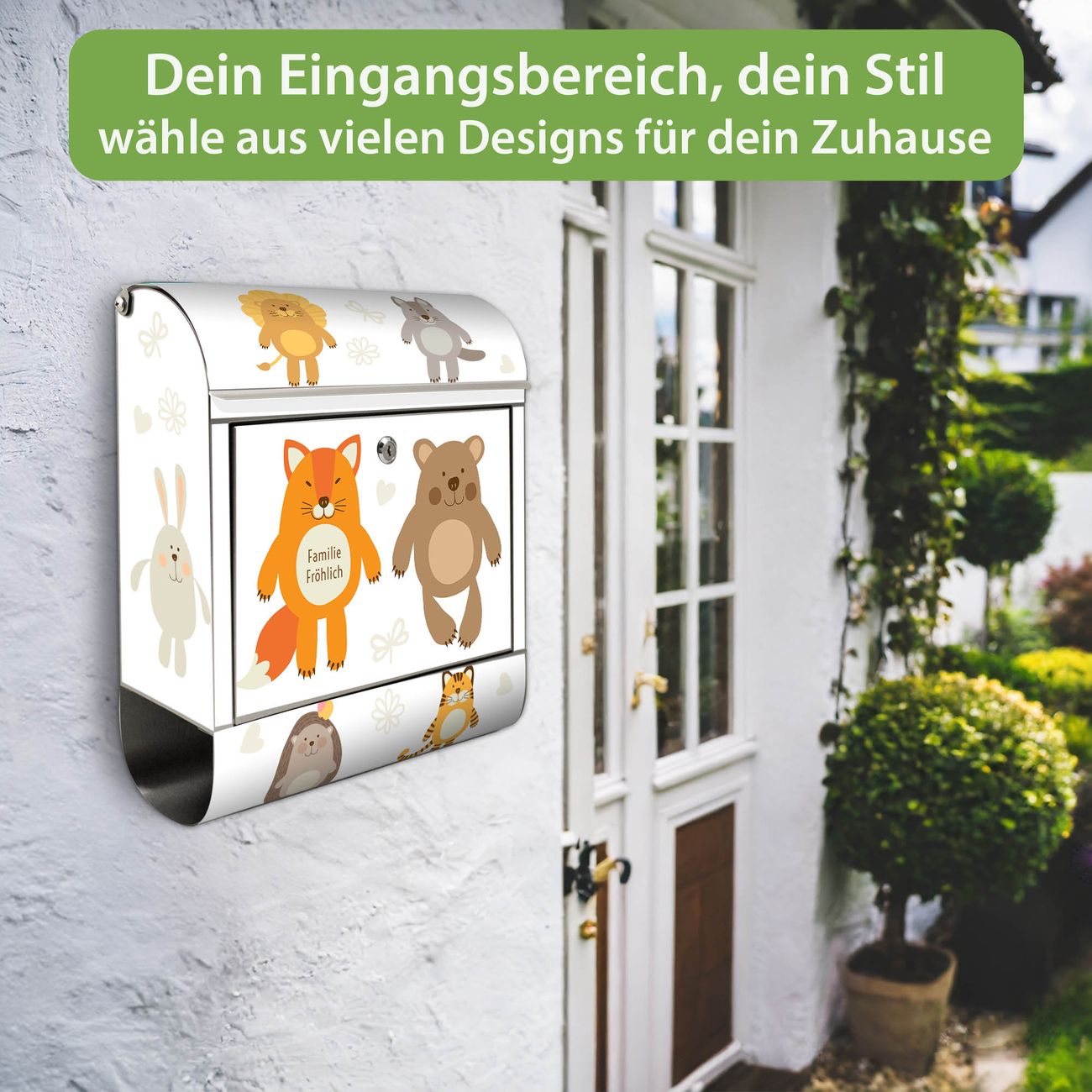 Wandbriefkasten Edelstahl Motiv Tierfreunde