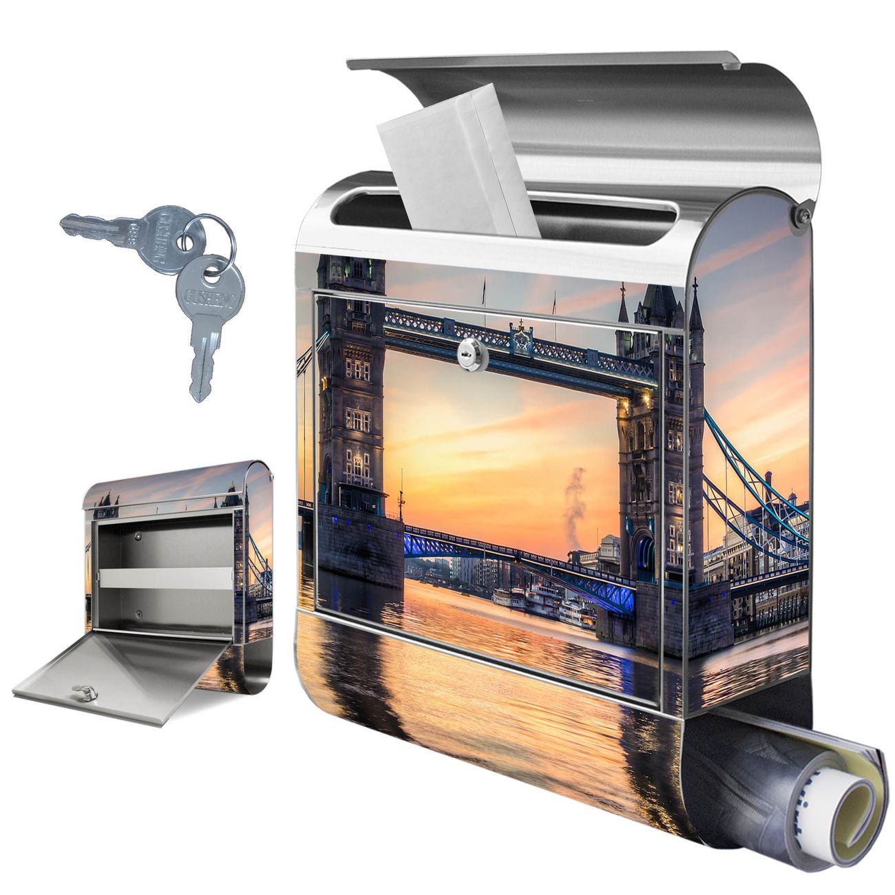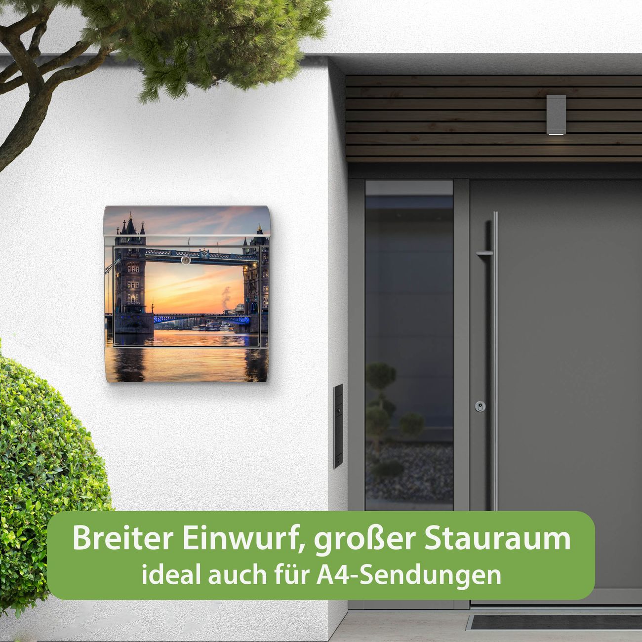 Wandbriefkasten Edelstahl Motiv Tower Bridge