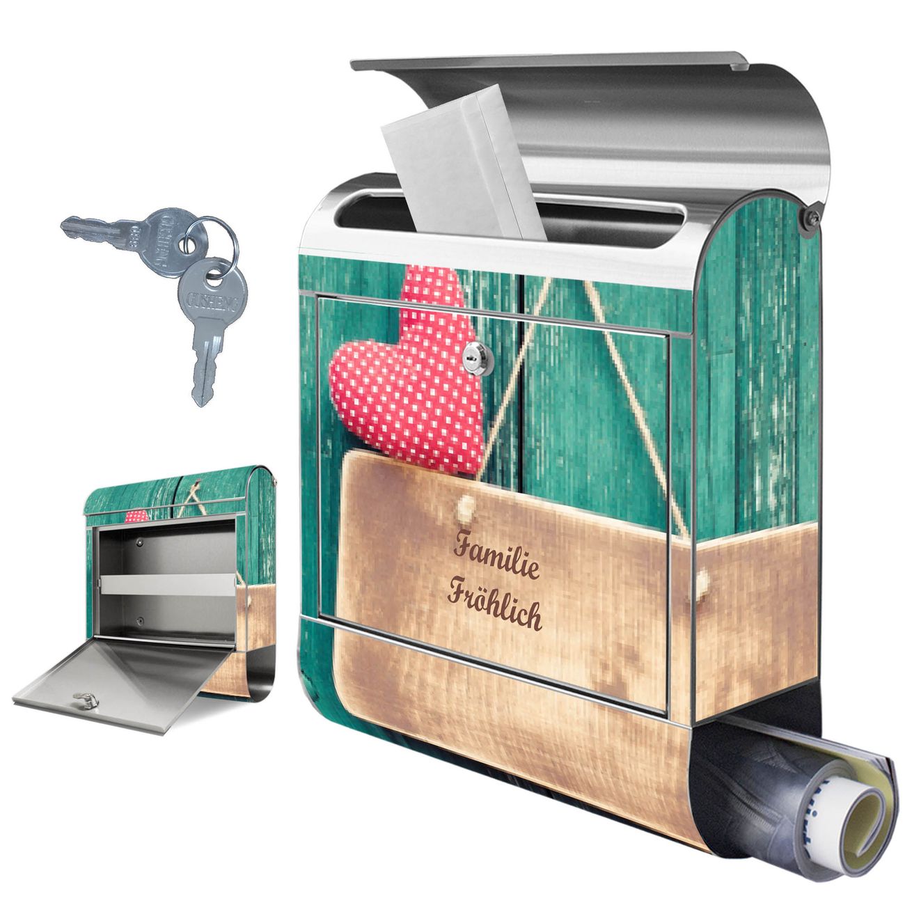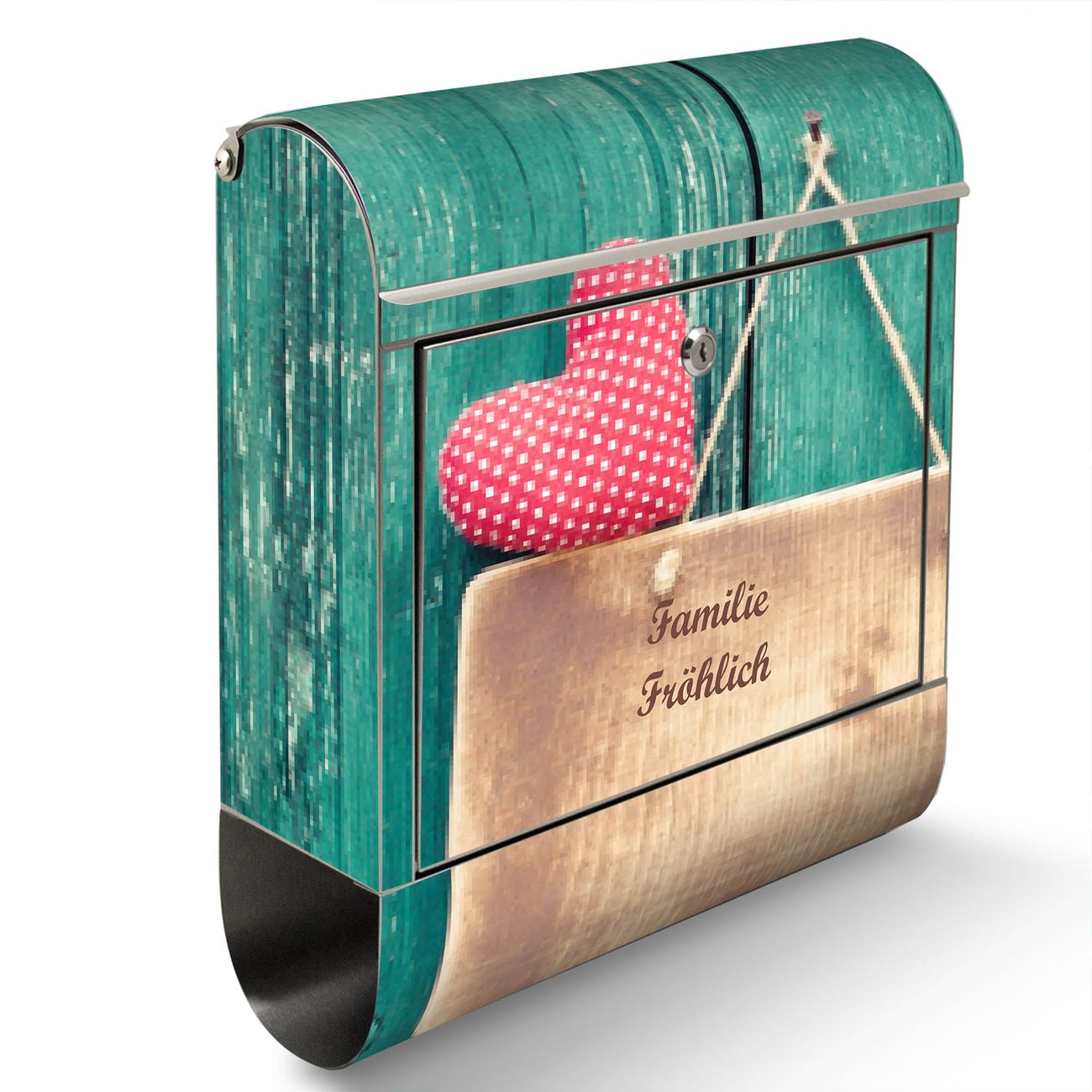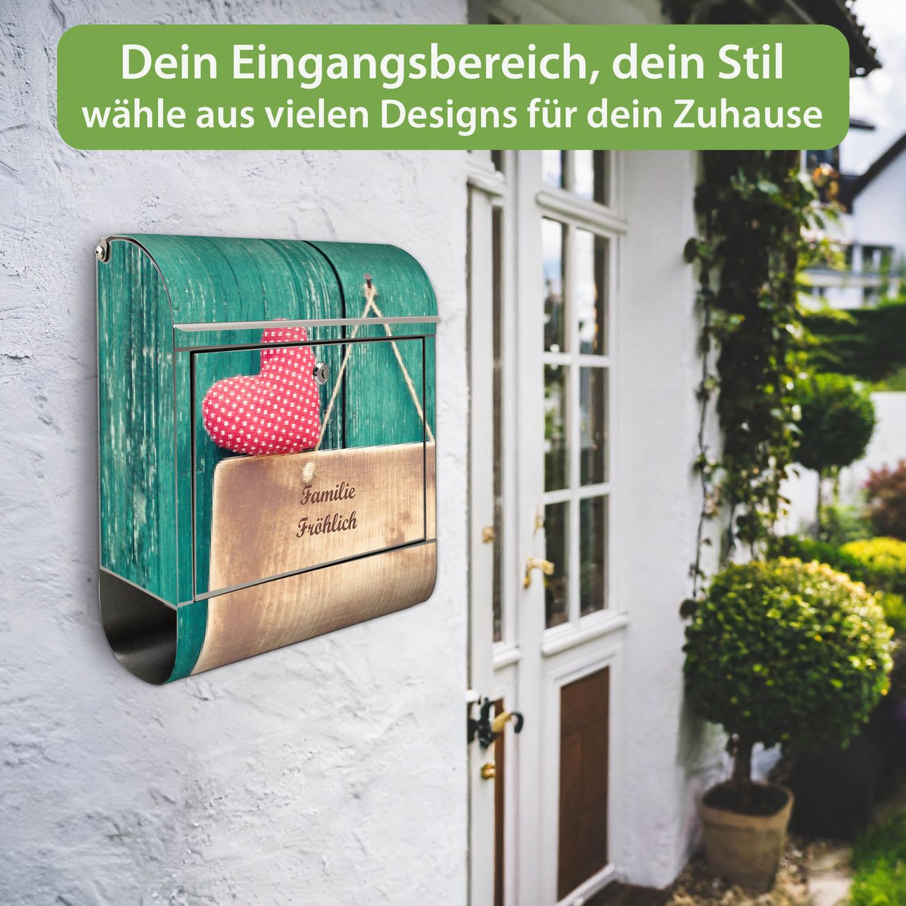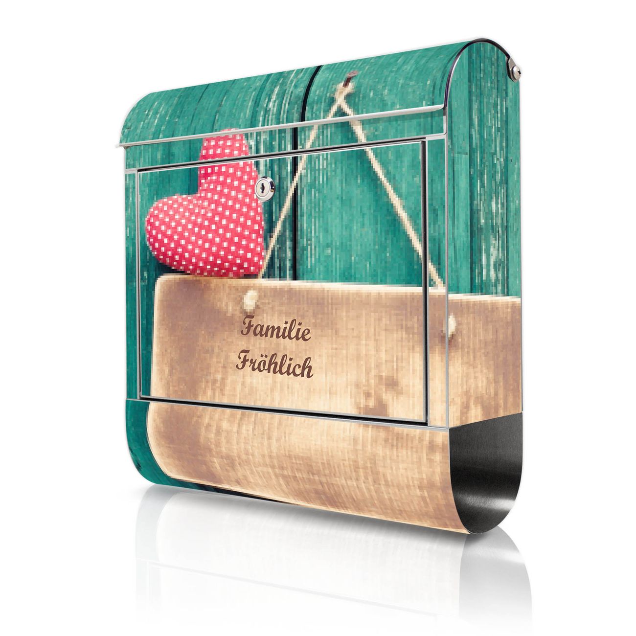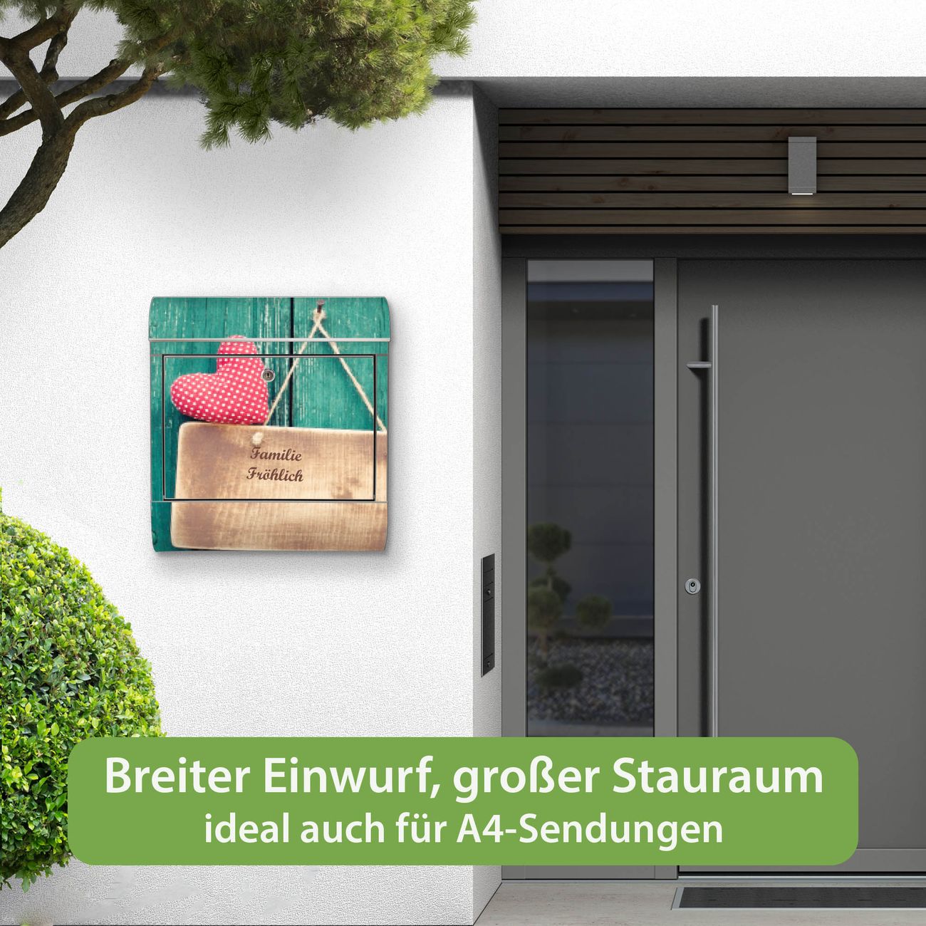 Wandbriefkasten Edelstahl Motiv Tür mit Herz