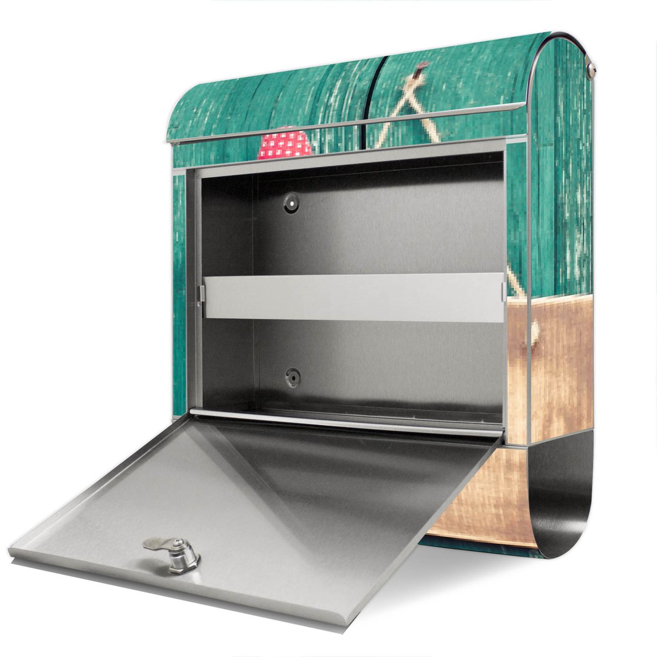 FUNKTION: Der banjado Edelstahl Briefkasten mit Motiv Motiv Tür mit Herz bietet Ihnen mit seinem Fassungsvermögen genügend Platz auch für große A4 Sendungen. Das integrierte Zeitungsfach eignet sich hervorragend um unkompliziert die Tageszeitung zu fassen. Auf Wunsch können Sie bei uns den passenden Ständer kaufen und so aus dem Wandbriefkasten einen Standbriefkasten machen. DESIGN: Der Motivbriefkasten hat ein sehr ansprechendes und ausgefallenes Design, damit entlocken Sie Ihren Nachbarn und dem Postboten ein Lächeln. Heben Sie Sich ab von der tristen grauen Masse ohne auf Funktionalität zu verzichten. DETAILS: Der Design Briefkasten mit Motiv Motiv Tür mit Herz besteht aus hochwertigem 18/0 Edelstahl. Das Motiv besteht aus einer wetter- und UV-resistenten Folie, die mit einem Schutzlaminat überzogen ist. Der Briefkasten wird mit Montagematerial und zwei Schlüsseln geliefert. NUTZEN: Sie können diesen Briefkasten sowohl als Wandbriefkasten montieren oder einen passenden Ständer auswählen und als Standbriefkasten einbetonieren. Die Größe bietet genügend Platz für Sendungen aller Art, das hochwertige Edelstahl ist rostfrei und die Motivfolie absolut wetterfest. SCHUTZ: Um Ihre Post optimal vor Witterungseinflüssen wie Starkregen zu schützen, empfehlen wir, den Briefkasten geschützt anzubringen. BANJADO: Ihr Briefkasten wird in Sachsen in einer kleinen Manufaktur von Hand veredelt. Die Motivfolie ist lösungsmittelfrei und schutzlaminiert, dies sorgt für einen langen Halt. Wir legen großen Wert auf die Verbindung von Funktionalität und Design. Sie erhalten Handarbeit aus Sachsen.