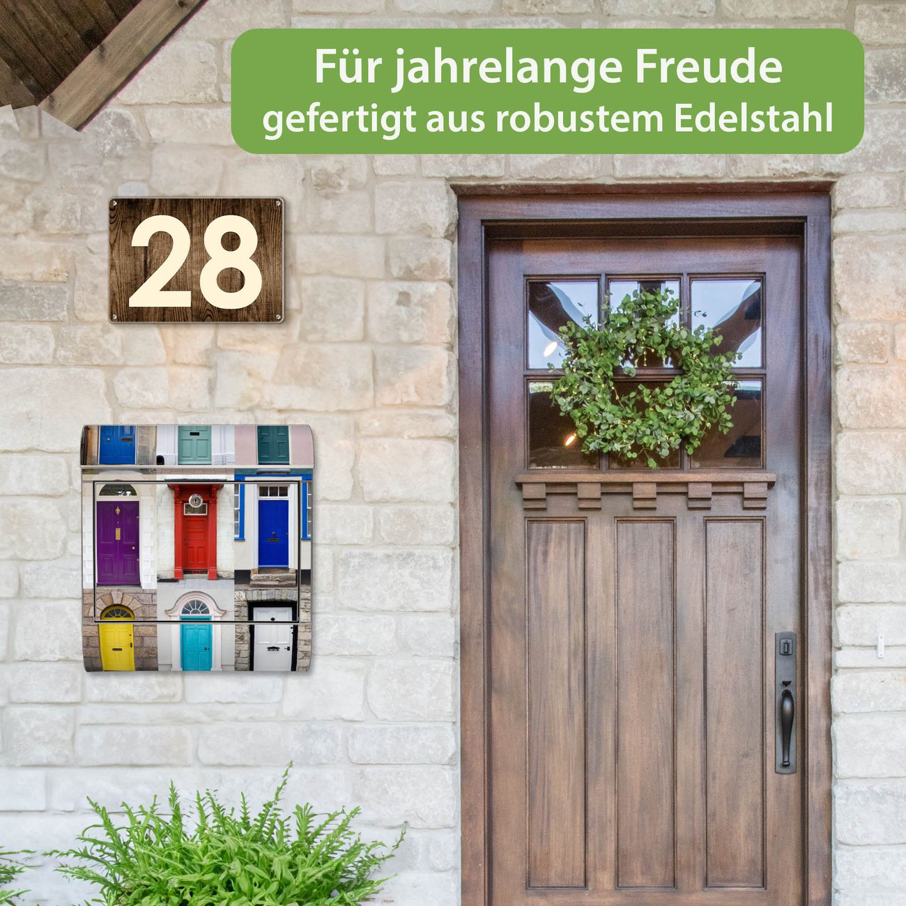 Wandbriefkasten Edelstahl Motiv Türen