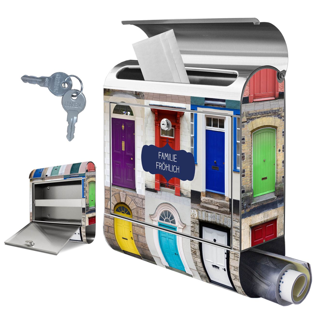 Wandbriefkasten Edelstahl Motiv Türen