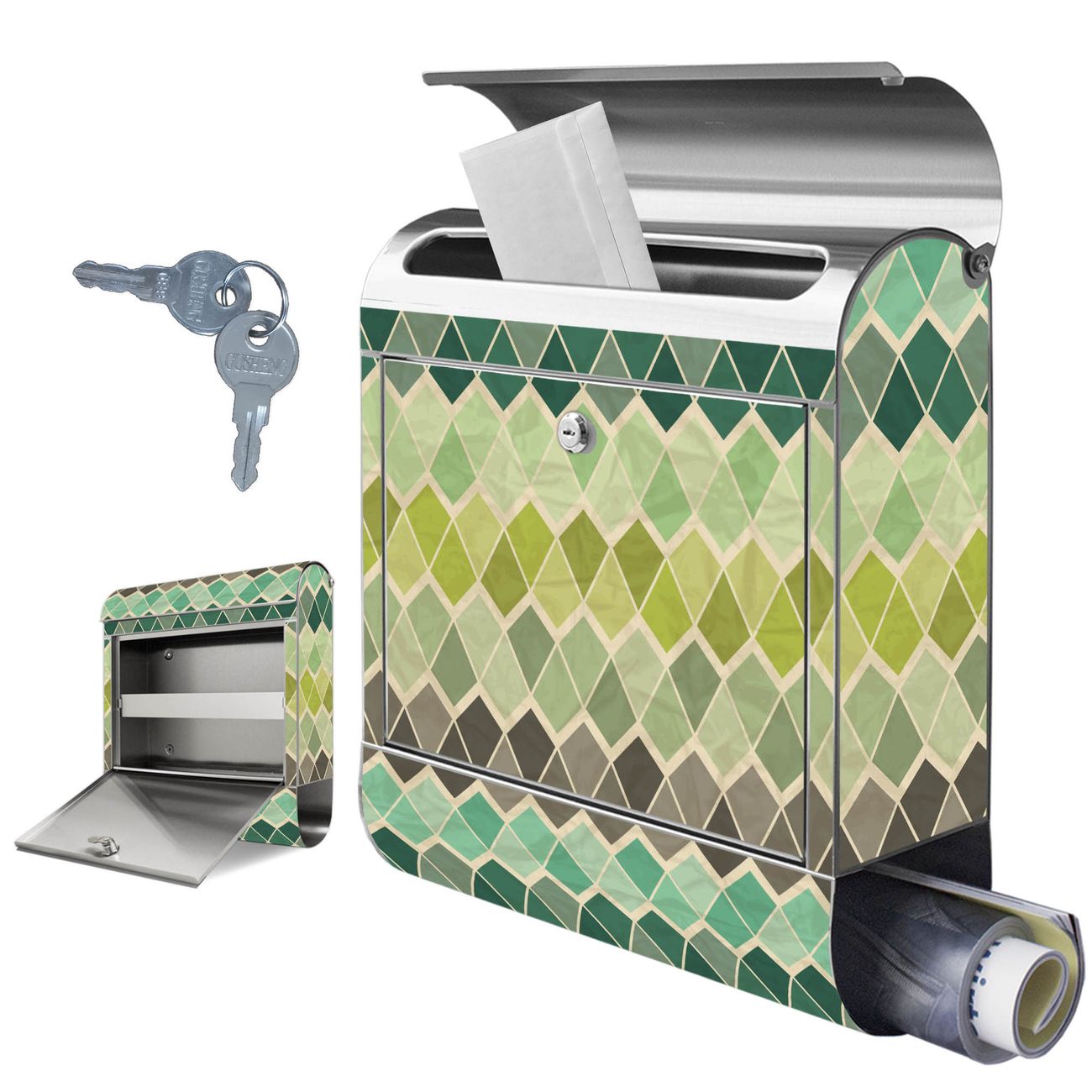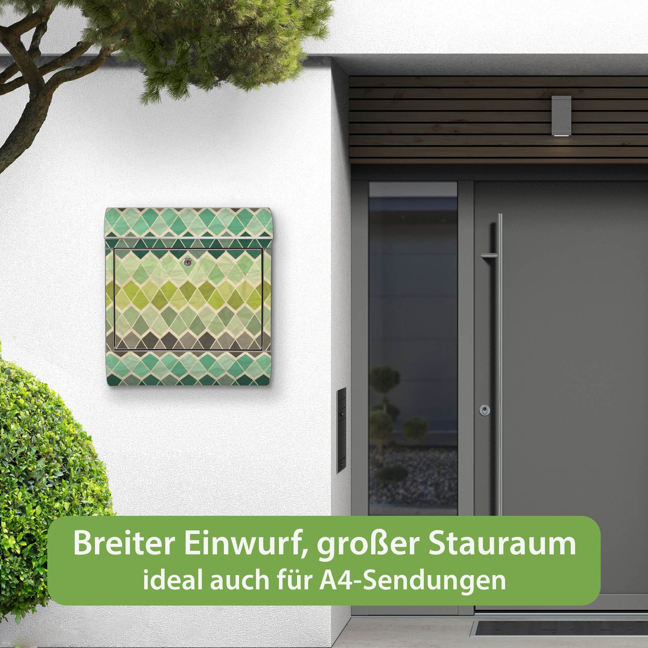 Wandbriefkasten Edelstahl Motiv Vier Farben Grün