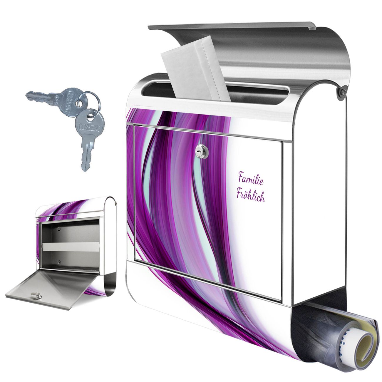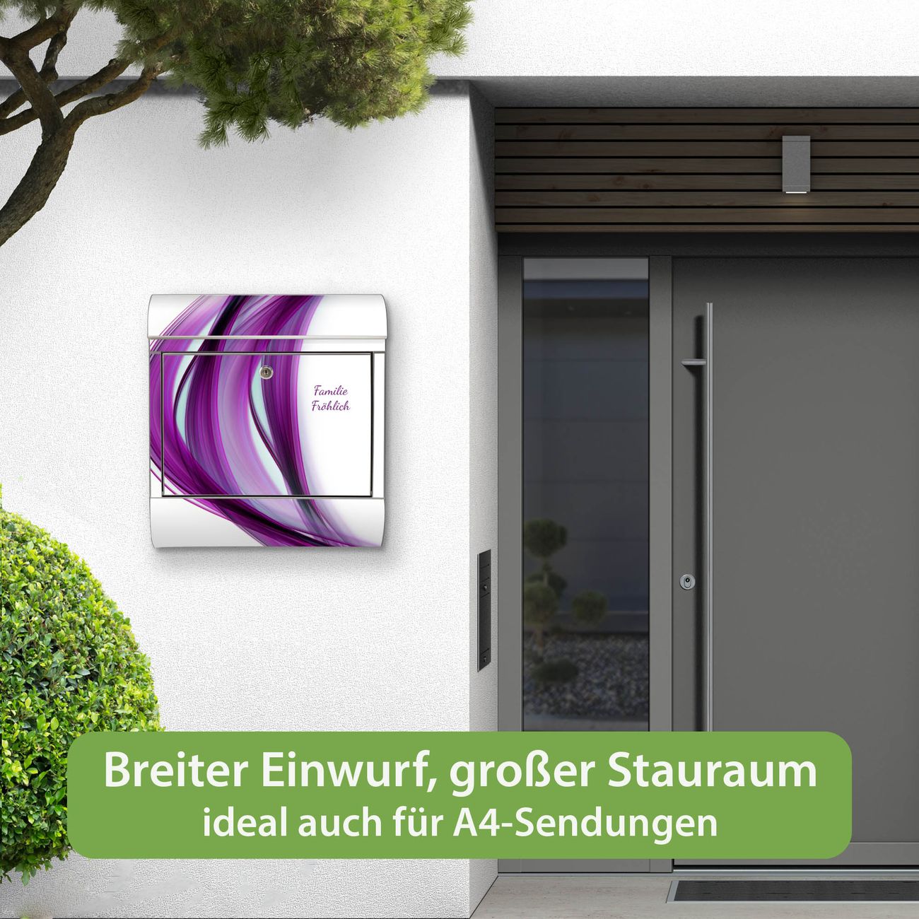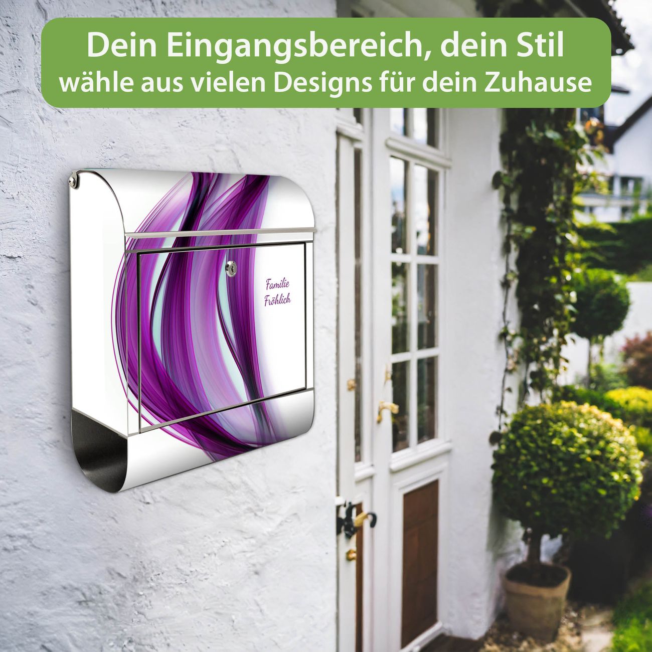 Wandbriefkasten Edelstahl Motiv Violet Element