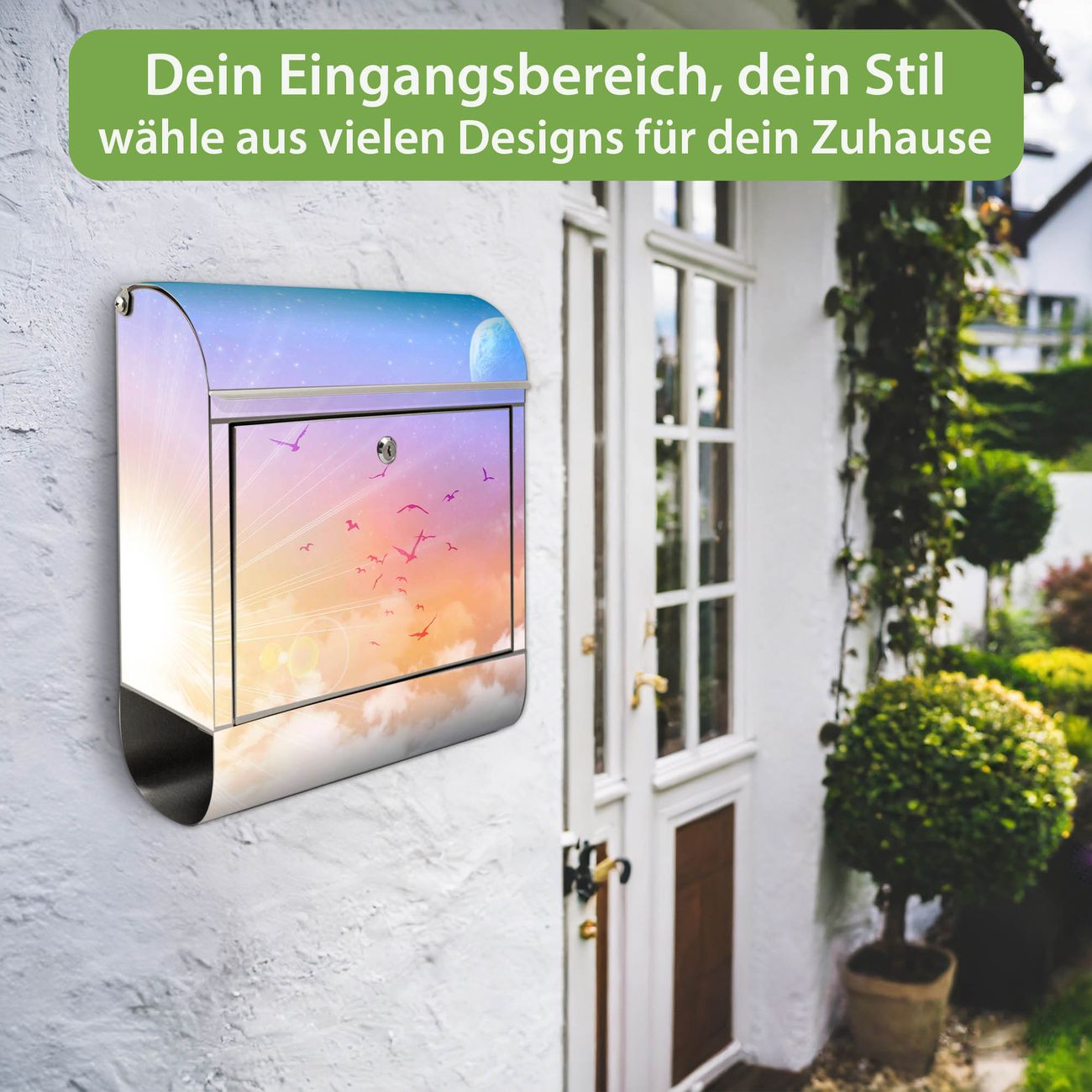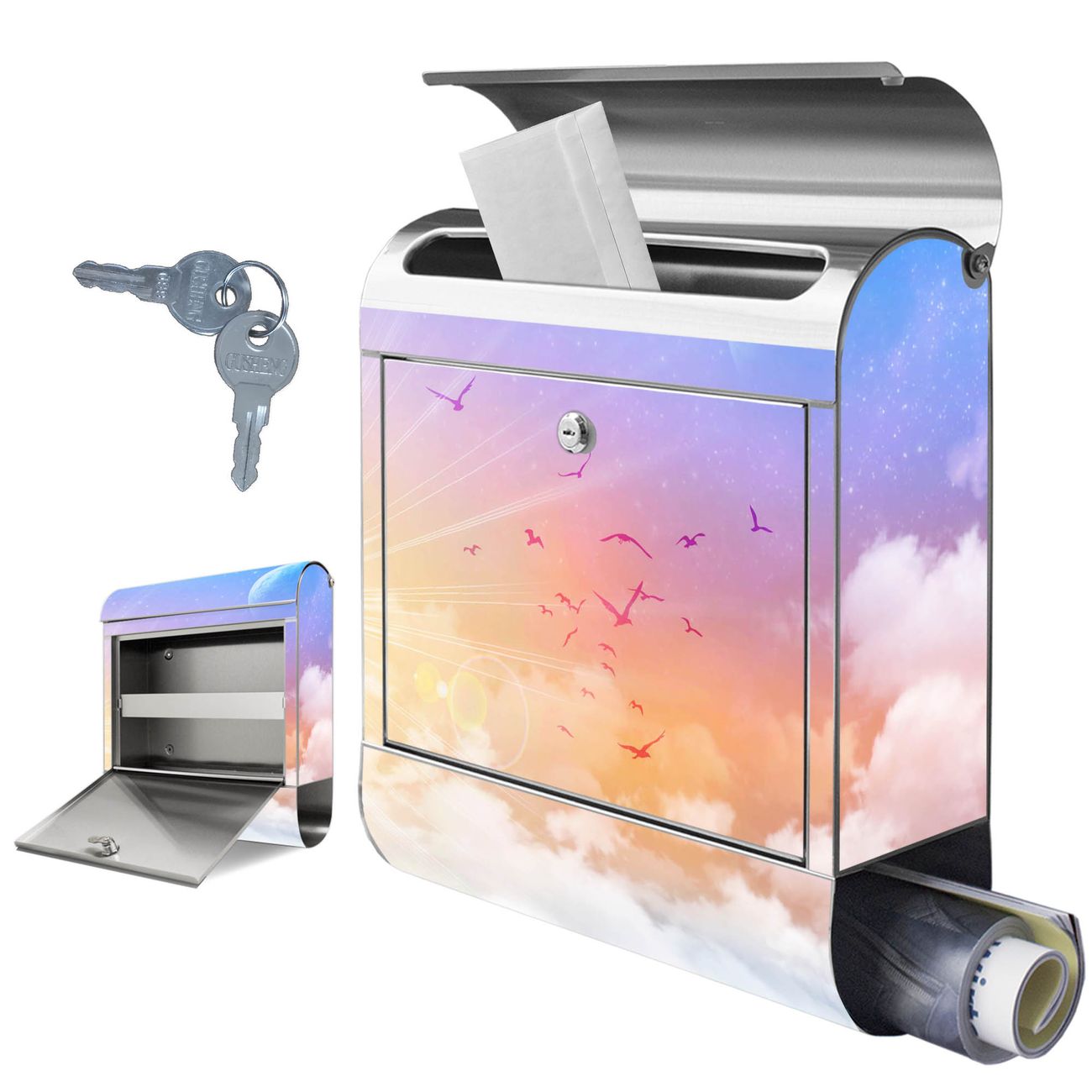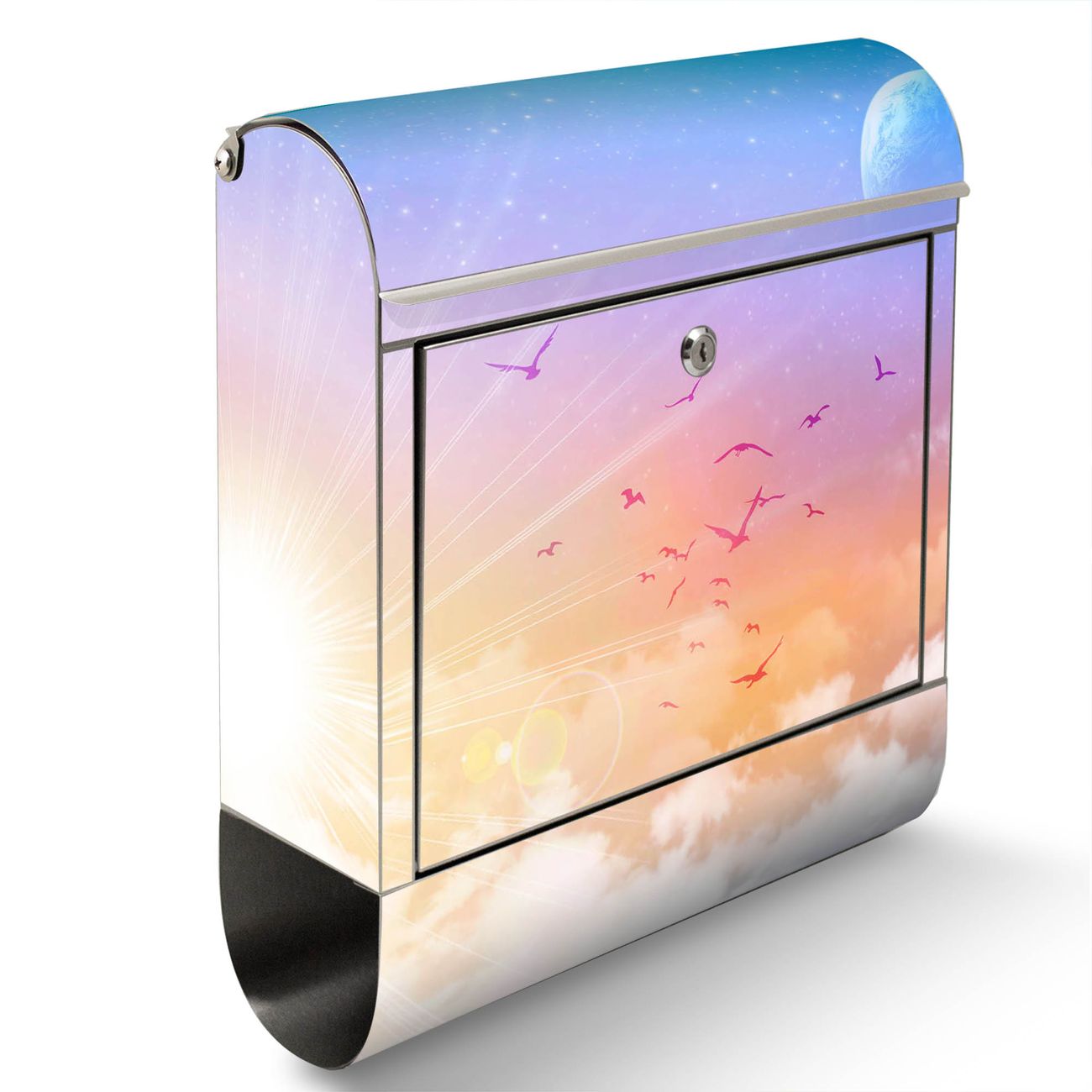 Wandbriefkasten Edelstahl Motiv Vögel am Himmel