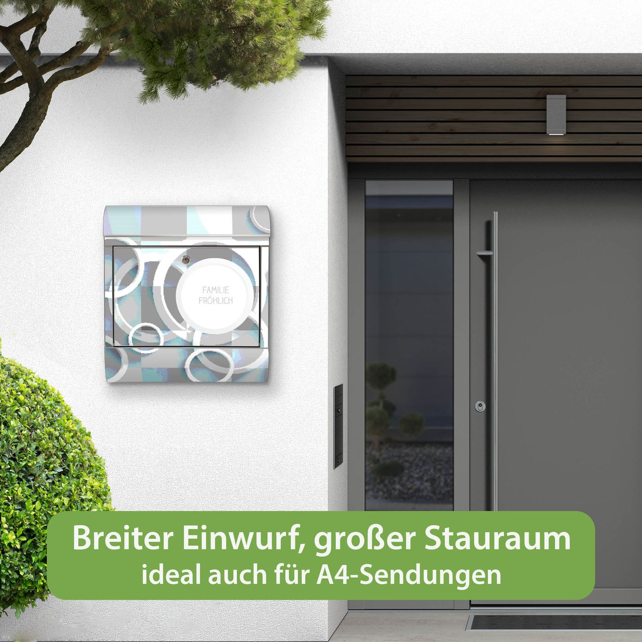 Wandbriefkasten Edelstahl Motiv Weiße Ringe