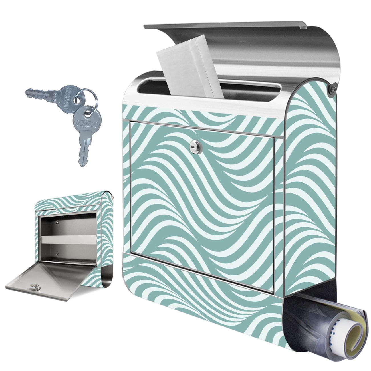 Wandbriefkasten Edelstahl Motiv Wellen Lindgrün