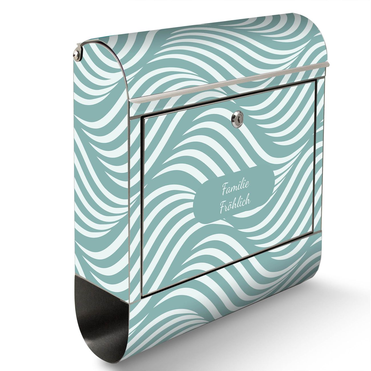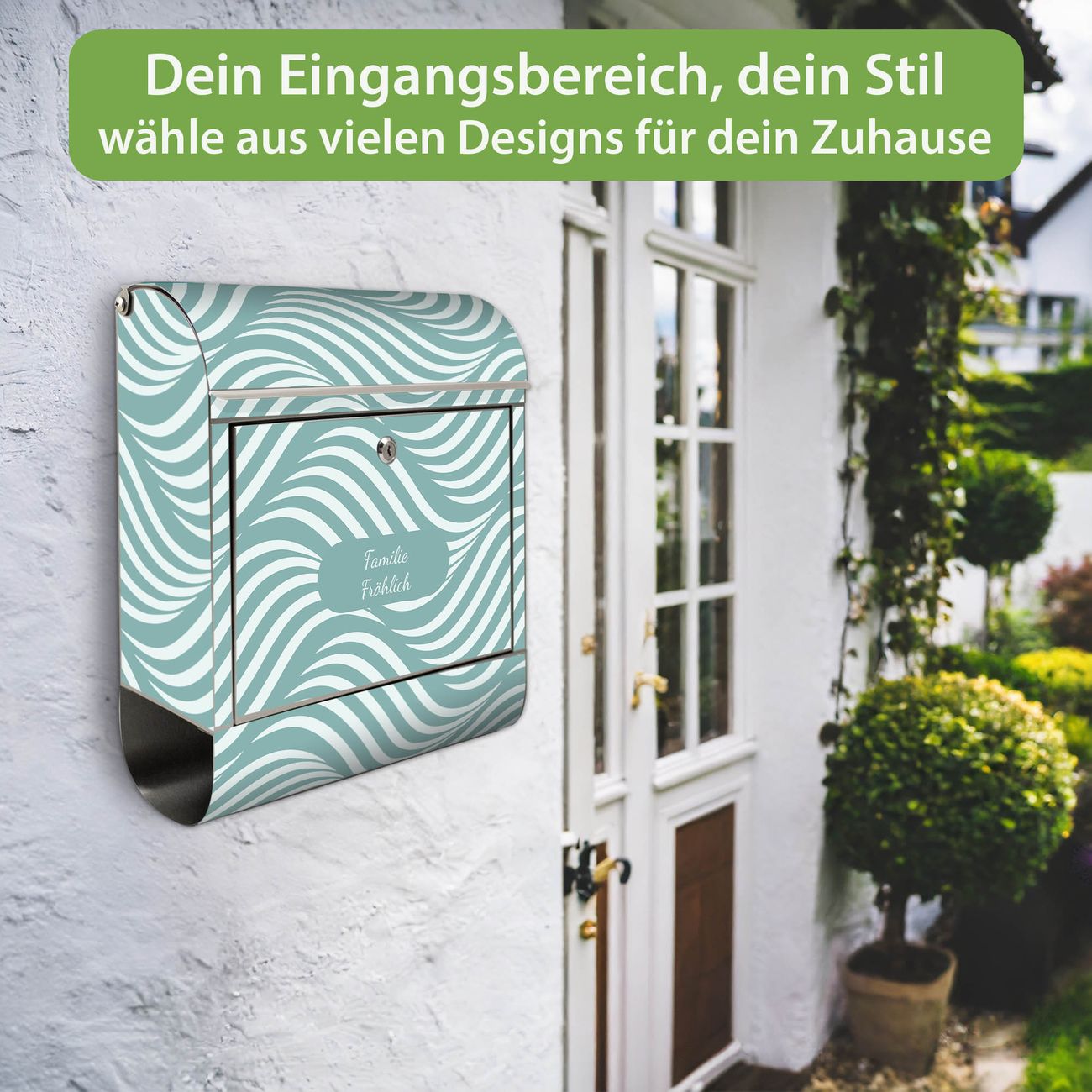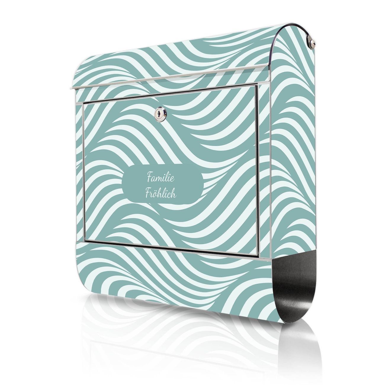 Wandbriefkasten Edelstahl Motiv Wellen Lindgrün
