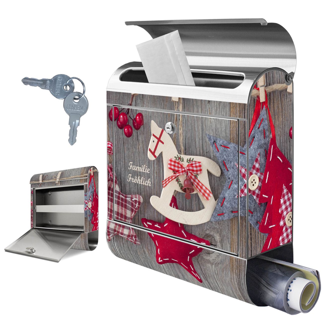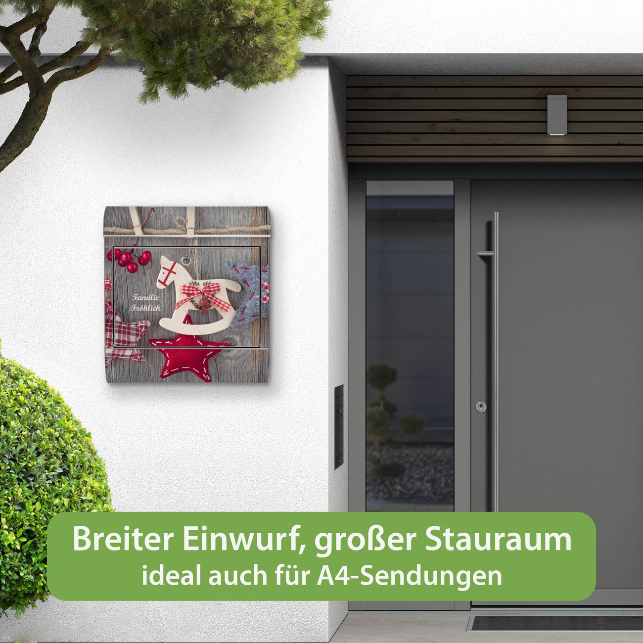 Wandbriefkasten Edelstahl Motiv Winterdekoration