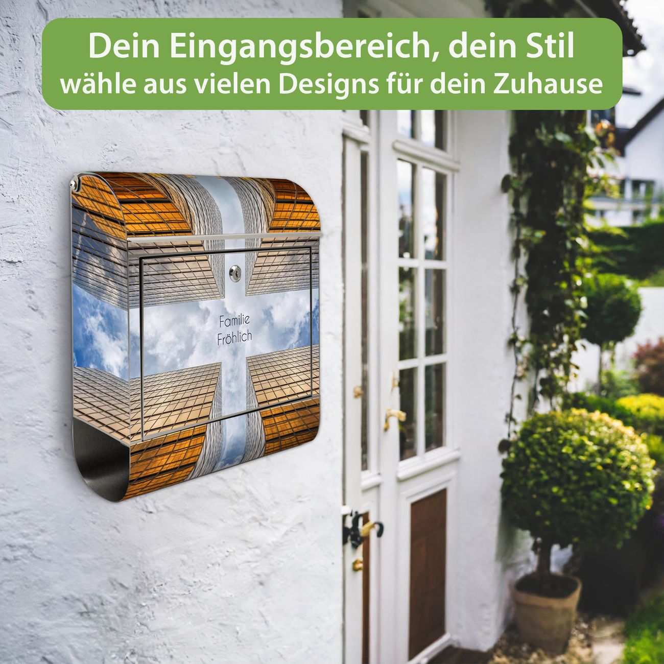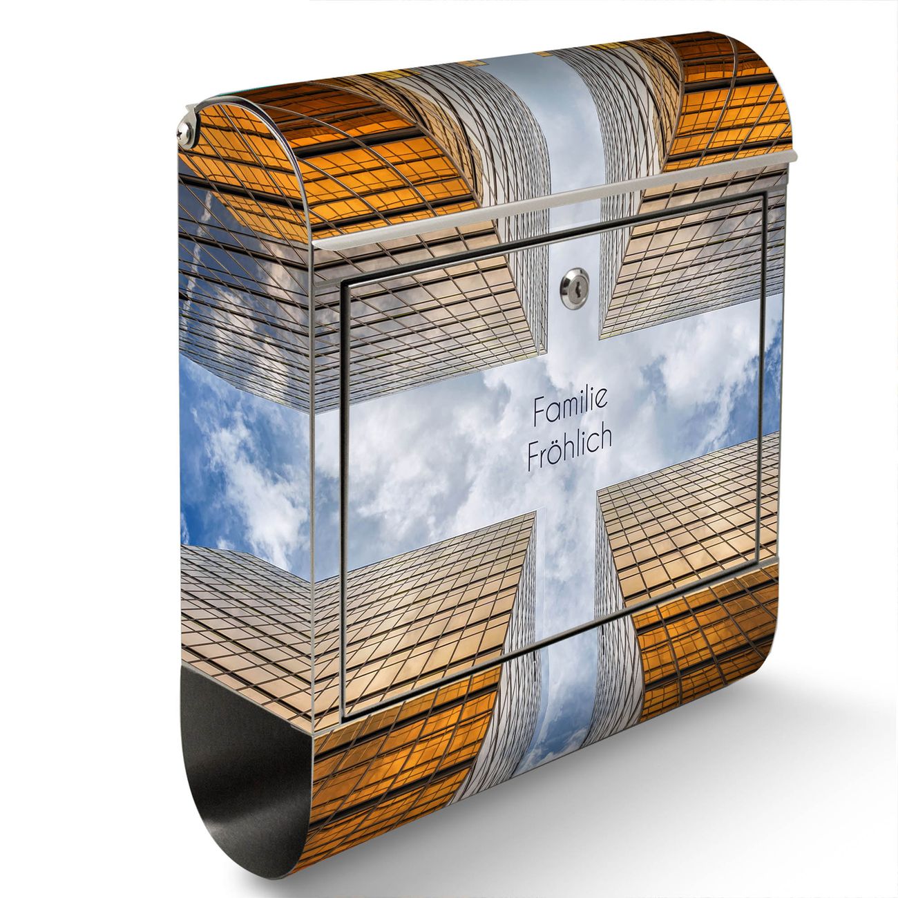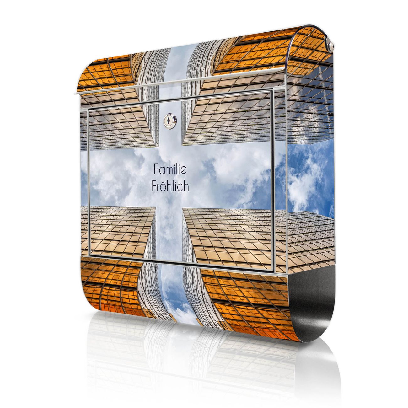 Wandbriefkasten Edelstahl Motiv Wolkenkratzer 2