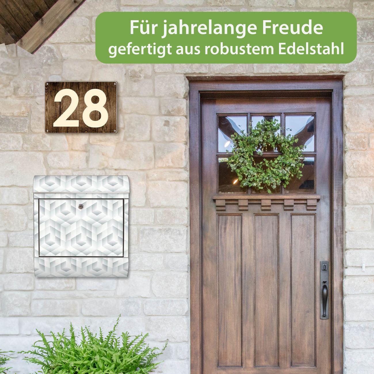 Wandbriefkasten Edelstahl Motiv Würfel Grau