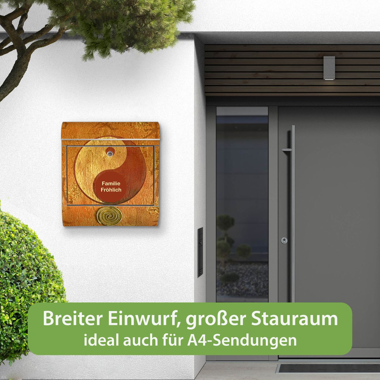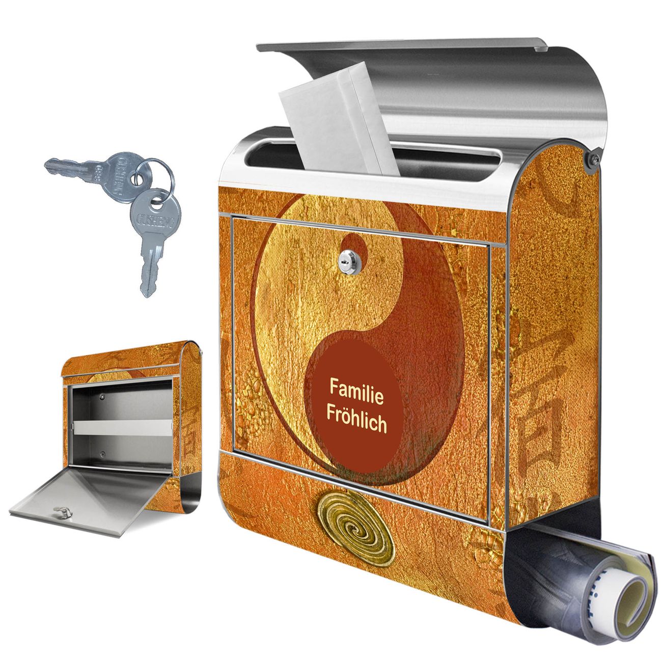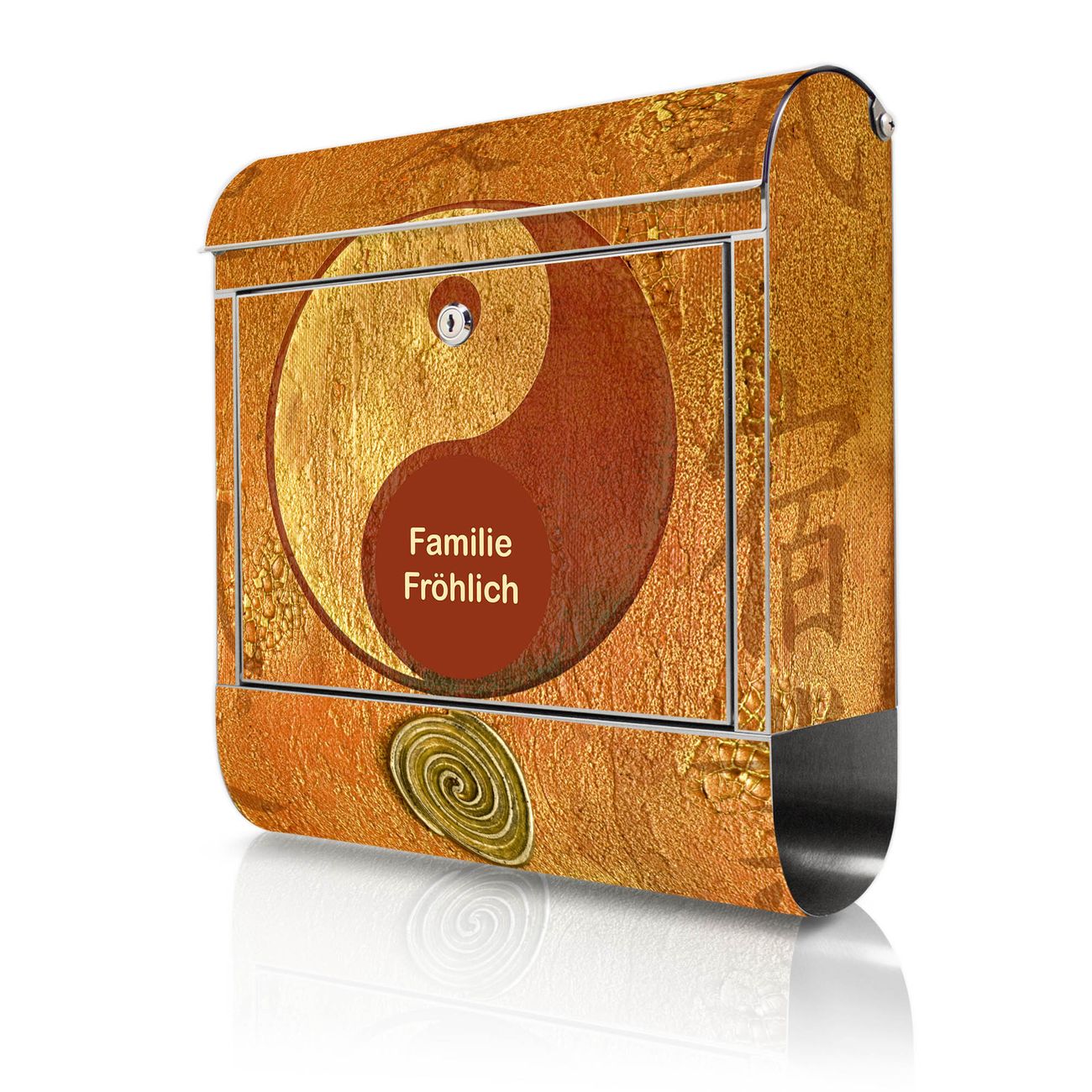 Wandbriefkasten Edelstahl Motiv Yin Yang