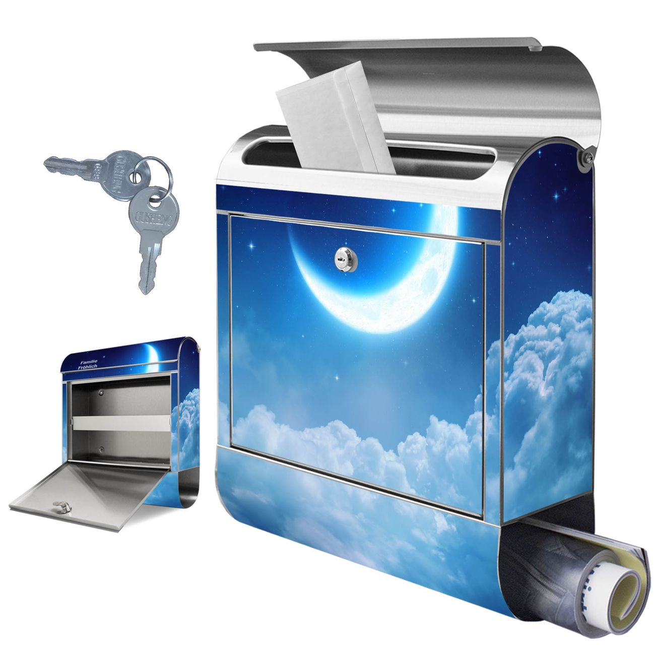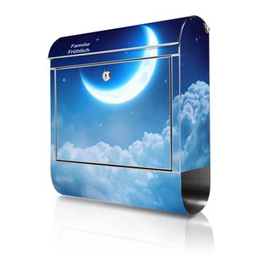 Wandbriefkasten Edelstahl Motiv zunehmender Mond