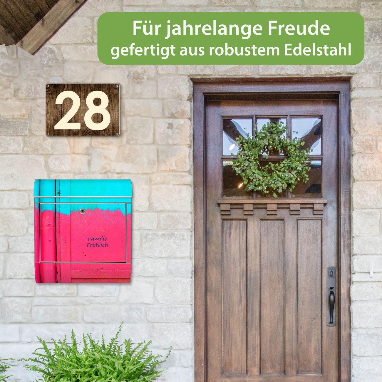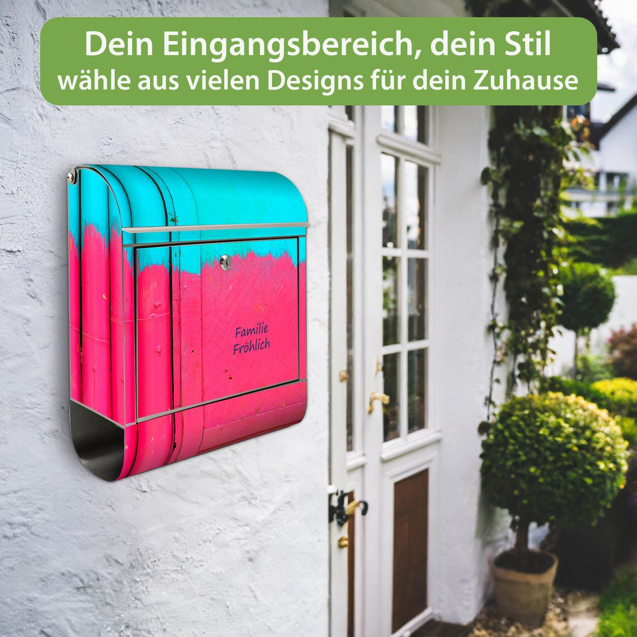 Wandbriefkasten Edelstahl Motiv Zwei Farben