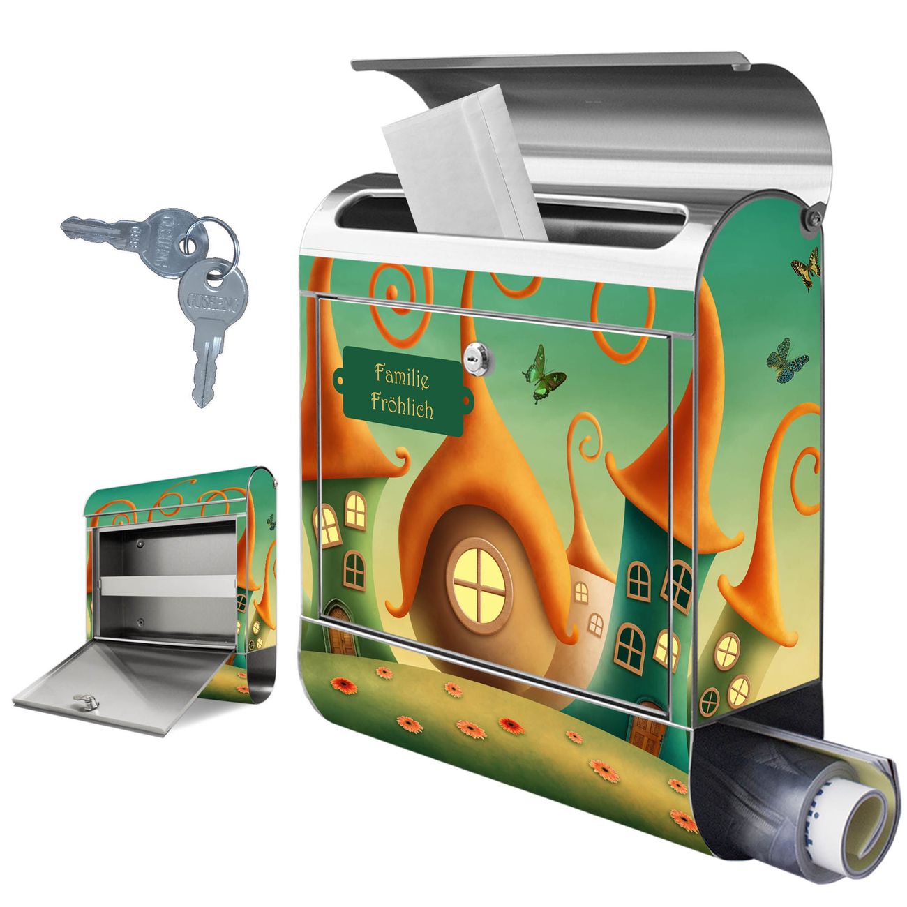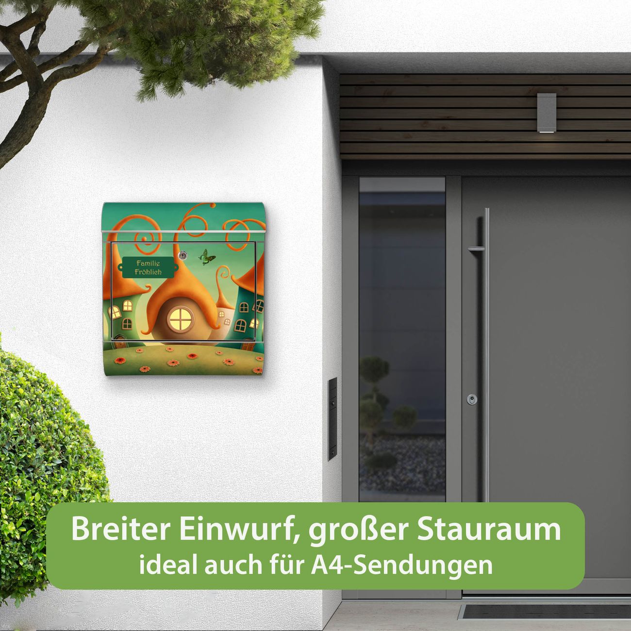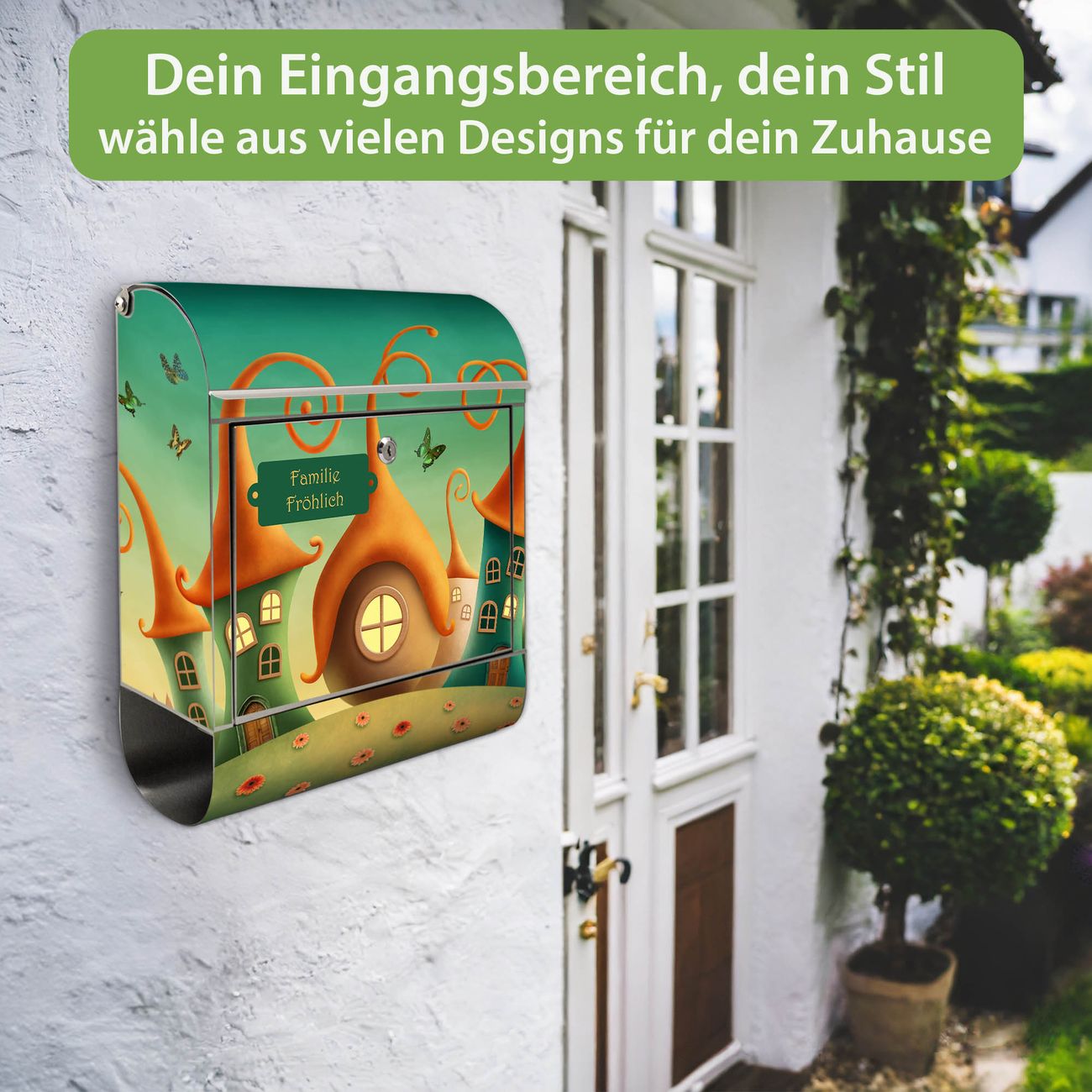 Wandbriefkasten Edelstahl Motiv Zwergenhausen