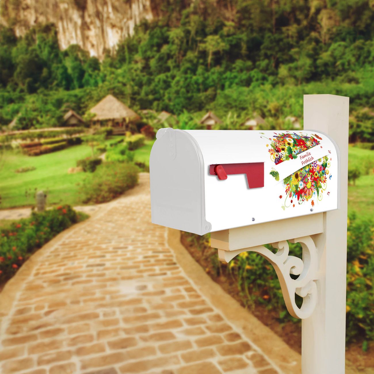 Weiße US-Mailbox mit Motiv Briefkasten Sommer (Achung WT-Motiv?)