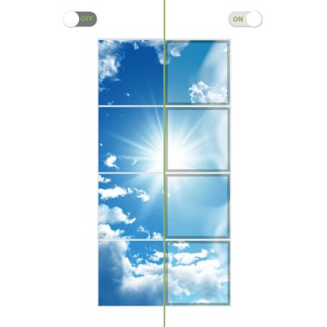 Entdecken Sie unsere vielseitigen Lichtdecken, hier in der Größe 124 x 248cm mit dem Motiv Motiv Clouds - Ihre Beleuchtungslösung für jede Umgebung Beleuchten Sie Ihren Raum nicht nur, sondern schaffen Sie Atmosphäre! Die banjado Lichtdecke verwandelt jeden Ort, ob zu Hause, in Praxen, Büros oder Studios in eine Wohlfühloase. Unsere einzelnen Elemente haben eine genormte Einheitsgröße von 62 x 62cm und können somit in jede gängige Rasterdecken verbaut werden. So finden Sie Ihre passende Ausführung: Gern helfen wir Ihnen, die passende Ausführung zu wählen. Hierfür muss die aktuelle Gegebenheit Ihrer Decke oder Wand beachtet werden. Haben Sie bereits eine Rasterdecke (auch Odenwalddecke genannt)? Hier bestellen Sie lediglich das Motiv + Beleuchtungspanel, denn beides wird in die bereits vorhandene Decke eingelegt. Haben Sie eine glatte Decke mit Lichtauslass oder möchten die Lichtdecke an der Wand befestigen? Hier bestellen Sie bitte Motiv + Beleuchtungspanel + Deckenbefestigung, eine Aufbauanleitung liegt immer bei. Die Lichtdecke kann sowohl an der Decke als auch an der Wand montiert werden, perfekt für kreative Lichtakzente oder alternative Beleuchtungslösungen. Haben Sie bereits eine Lichtdecke und möchten nur das Motiv wechseln? Hier bestellen Sie bitte nur Motiv, der Wechsel ist denkbar einfach. Der Aufbau Ihrer banjado Lichtdecke gestaltet sich unkompliziert, dank einer verständlichen Anleitung, die Ihnen Schritt für Schritt durch den Montageprozess hilft. Für die endgültige Installation und den sicheren Anschluss empfehlen wir die Hinzuziehung eines Fachmanns, um die optimale Funktion und Sicherheit Ihrer Beleuchtung zu gewährleisten. Falls Sie einen Fachmann für die Installation benötigen, geben Sie uns gern Bescheid, wir vermitteln Ihnen gern einen geeigneten Ansprechpartner aus Ihrer Nähe. Steuerung: Steigern Sie Ihr Beleuchtungserlebnis mit der nahtlosen Integration in Ihr Smart Home. Durch die Kompatibilität mit der SmartLife App, Alexa und Google Assistant wird Ihr Smartphone zur zentralen Steuerungseinheit. Ihr Handy fungiert hierbei sozusagen als Fernbedienung. Legen Sie individuelle Lichtszenen in der App fest, die bei Aktivierung über den Wand-Ein-/Ausschalter immer wieder abgerufen werden können ohne Handy. Mit der Szenenfunktion in der Smart App können Sie die Beleuchtung personalisieren und steuern, sodass sie auf Ihre individuellen Bedürfnisse, Tagesrhythmus und Stimmung zugeschnitten ist. Beispielsweise können Sie sich in der Morgendämmerung durch ein sanftes Licht wecken lassen oder das Licht der Praxis werktags um 7 Uhr automatisch einschalten lassen. Dieses kann dann natürlich auch zu einer bestimmten Zeit automatisch ausgeschaltet werden. Motivwahl: Diese einzigartige Lichtdecke zeichnet sich durch ihre Fähigkeit aus, die Lichtfarbe je nach gewähltem Motiv anzupassen - ein Baum wirft ein sanftes grünes Licht, während eine Wolkendecke Ihren Raum in ein beruhigendes blaues Leuchten hüllt. Berücksichtigen Sie dies bitte bei Ihrer Motivauswahl. Sie können das Motiv jederzeit ohne großen Aufwand austauschen, ob nach Jahreszeit oder anderem Anlass, unsere Auswahl lässt kaum Wünsche offen. Wir fertigen Ihnen gern eine personalisierte Lichtdecke mit einem eigenen Motiv oder Logo oder Foto, schreiben Sie uns jederzeit an. Technische Daten: Das Motiv ist auf einer 4mm starken Acrylglas Scheibe aufgebracht, das Gesamtgewicht Ihrer Ausführung beträgt 18,1kg. Die Farbtemperatur lässt sich frei einstellen von 3000 bis 6000 Kelvin, damit können Sie stufenlos zwischen warmweiß, neutralweiß und kaltweiß wählen. Die Gesamtleistung bei Ihrer gewählten Ausführung beträgt 320W. Der Lichtstrom beträgt 3600 Lumen, die Nennspannung 230 V. Die Lichtdecke ist mit Schutzart IP20 für den Innenbereich konzipiert und sollte nicht im Nassbereich verwendet werden.