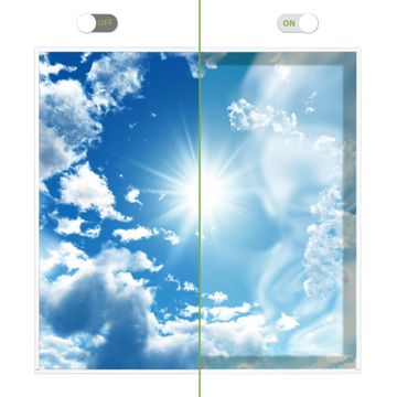 Entdecken Sie unsere vielseitigen Lichtdecken, hier in der Größe 62 x 62cm mit dem Motiv Motiv Clouds - Ihre Beleuchtungslösung für jede Umgebung Beleuchten Sie Ihren Raum nicht nur, sondern schaffen Sie Atmosphäre! Die banjado Lichtdecke verwandelt jeden Ort, ob zu Hause, in Praxen, Büros oder Studios in eine Wohlfühloase. Unsere einzelnen Elemente haben eine genormte Einheitsgröße von 62 x 62cm und können somit in jede gängige Rasterdecken verbaut werden. So finden Sie Ihre passende Ausführung: Gern helfen wir Ihnen, die passende Ausführung zu wählen. Hierfür muss die aktuelle Gegebenheit Ihrer Decke oder Wand beachtet werden. Haben Sie bereits eine Rasterdecke (auch Odenwalddecke genannt)? Hier bestellen Sie lediglich das Motiv + Beleuchtungspanel, denn beides wird in die bereits vorhandene Decke eingelegt. Haben Sie eine glatte Decke mit Lichtauslass oder möchten die Lichtdecke an der Wand befestigen? Hier bestellen Sie bitte Motiv + Beleuchtungspanel + Deckenbefestigung, eine Aufbauanleitung liegt immer bei. Die Lichtdecke kann sowohl an der Decke als auch an der Wand montiert werden, perfekt für kreative Lichtakzente oder alternative Beleuchtungslösungen. Haben Sie bereits eine Lichtdecke und möchten nur das Motiv wechseln? Hier bestellen Sie bitte nur Motiv, der Wechsel ist denkbar einfach. Der Aufbau Ihrer banjado Lichtdecke gestaltet sich unkompliziert, dank einer verständlichen Anleitung, die Ihnen Schritt für Schritt durch den Montageprozess hilft. Für die endgültige Installation und den sicheren Anschluss empfehlen wir die Hinzuziehung eines Fachmanns, um die optimale Funktion und Sicherheit Ihrer Beleuchtung zu gewährleisten. Falls Sie einen Fachmann für die Installation benötigen, geben Sie uns gern Bescheid, wir vermitteln Ihnen gern einen geeigneten Ansprechpartner aus Ihrer Nähe. Steuerung: Steigern Sie Ihr Beleuchtungserlebnis mit der nahtlosen Integration in Ihr Smart Home. Durch die Kompatibilität mit der SmartLife App, Alexa und Google Assistant wird Ihr Smartphone zur zentralen Steuerungseinheit. Ihr Handy fungiert hierbei sozusagen als Fernbedienung. Legen Sie individuelle Lichtszenen in der App fest, die bei Aktivierung über den Wand-Ein-/Ausschalter immer wieder abgerufen werden können ohne Handy. Mit der Szenenfunktion in der Smart App können Sie die Beleuchtung personalisieren und steuern, sodass sie auf Ihre individuellen Bedürfnisse, Tagesrhythmus und Stimmung zugeschnitten ist. Beispielsweise können Sie sich in der Morgendämmerung durch ein sanftes Licht wecken lassen oder das Licht der Praxis werktags um 7 Uhr automatisch einschalten lassen. Dieses kann dann natürlich auch zu einer bestimmten Zeit automatisch ausgeschaltet werden. Motivwahl: Diese einzigartige Lichtdecke zeichnet sich durch ihre Fähigkeit aus, die Lichtfarbe je nach gewähltem Motiv anzupassen - ein Baum wirft ein sanftes grünes Licht, während eine Wolkendecke Ihren Raum in ein beruhigendes blaues Leuchten hüllt. Berücksichtigen Sie dies bitte bei Ihrer Motivauswahl. Sie können das Motiv jederzeit ohne großen Aufwand austauschen, ob nach Jahreszeit oder anderem Anlass, unsere Auswahl lässt kaum Wünsche offen. Wir fertigen Ihnen gern eine personalisierte Lichtdecke mit einem eigenen Motiv oder Logo oder Foto, schreiben Sie uns jederzeit an. Technische Daten: Das Motiv ist auf einer 4mm starken Acrylglas Scheibe aufgebracht, das Gesamtgewicht Ihrer Ausführung beträgt 4,9kg. Die Farbtemperatur lässt sich frei einstellen von 3000 bis 6000 Kelvin, damit können Sie stufenlos zwischen warmweiß, neutralweiß und kaltweiß wählen. Die Gesamtleistung bei Ihrer gewählten Ausführung beträgt 40W. Der Lichtstrom beträgt 3600 Lumen, die Nennspannung 230 V. Die Lichtdecke ist mit Schutzart IP20 für den Innenbereich konzipiert und sollte nicht im Nassbereich verwendet werden.