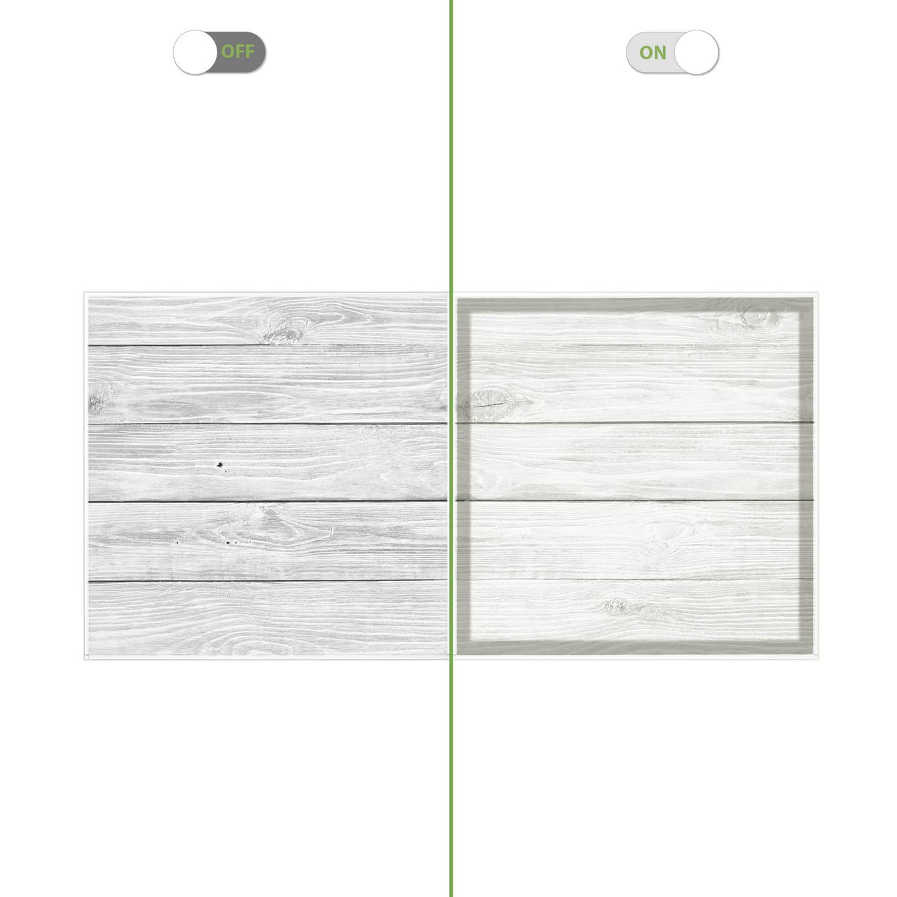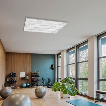 Entdecken Sie unsere vielseitigen Lichtdecken, hier in der Größe 124 x 62cm mit dem Motiv Motiv Weiß Gebeizt - Ihre Beleuchtungslösung für jede Umgebung Beleuchten Sie Ihren Raum nicht nur, sondern schaffen Sie Atmosphäre! Die banjado Lichtdecke verwandelt jeden Ort, ob zu Hause, in Praxen, Büros oder Studios in eine Wohlfühloase. Unsere einzelnen Elemente haben eine genormte Einheitsgröße von 62 x 62cm und können somit in jede gängige Rasterdecken verbaut werden. So finden Sie Ihre passende Ausführung: Gern helfen wir Ihnen, die passende Ausführung zu wählen. Hierfür muss die aktuelle Gegebenheit Ihrer Decke oder Wand beachtet werden. Haben Sie bereits eine Rasterdecke (auch Odenwalddecke genannt)? Hier bestellen Sie lediglich das Motiv + Beleuchtungspanel, denn beides wird in die bereits vorhandene Decke eingelegt. Haben Sie eine glatte Decke mit Lichtauslass oder möchten die Lichtdecke an der Wand befestigen? Hier bestellen Sie bitte Motiv + Beleuchtungspanel + Deckenbefestigung, eine Aufbauanleitung liegt immer bei. Die Lichtdecke kann sowohl an der Decke als auch an der Wand montiert werden, perfekt für kreative Lichtakzente oder alternative Beleuchtungslösungen. Haben Sie bereits eine Lichtdecke und möchten nur das Motiv wechseln? Hier bestellen Sie bitte nur Motiv, der Wechsel ist denkbar einfach. Der Aufbau Ihrer banjado Lichtdecke gestaltet sich unkompliziert, dank einer verständlichen Anleitung, die Ihnen Schritt für Schritt durch den Montageprozess hilft. Für die endgültige Installation und den sicheren Anschluss empfehlen wir die Hinzuziehung eines Fachmanns, um die optimale Funktion und Sicherheit Ihrer Beleuchtung zu gewährleisten. Falls Sie einen Fachmann für die Installation benötigen, geben Sie uns gern Bescheid, wir vermitteln Ihnen gern einen geeigneten Ansprechpartner aus Ihrer Nähe. Steuerung: Steigern Sie Ihr Beleuchtungserlebnis mit der nahtlosen Integration in Ihr Smart Home. Durch die Kompatibilität mit der SmartLife App, Alexa und Google Assistant wird Ihr Smartphone zur zentralen Steuerungseinheit. Ihr Handy fungiert hierbei sozusagen als Fernbedienung. Legen Sie individuelle Lichtszenen in der App fest, die bei Aktivierung über den Wand-Ein-/Ausschalter immer wieder abgerufen werden können ohne Handy. Mit der Szenenfunktion in der Smart App können Sie die Beleuchtung personalisieren und steuern, sodass sie auf Ihre individuellen Bedürfnisse, Tagesrhythmus und Stimmung zugeschnitten ist. Beispielsweise können Sie sich in der Morgendämmerung durch ein sanftes Licht wecken lassen oder das Licht der Praxis werktags um 7 Uhr automatisch einschalten lassen. Dieses kann dann natürlich auch zu einer bestimmten Zeit automatisch ausgeschaltet werden. Motivwahl: Diese einzigartige Lichtdecke zeichnet sich durch ihre Fähigkeit aus, die Lichtfarbe je nach gewähltem Motiv anzupassen - ein Baum wirft ein sanftes grünes Licht, während eine Wolkendecke Ihren Raum in ein beruhigendes blaues Leuchten hüllt. Berücksichtigen Sie dies bitte bei Ihrer Motivauswahl. Sie können das Motiv jederzeit ohne großen Aufwand austauschen, ob nach Jahreszeit oder anderem Anlass, unsere Auswahl lässt kaum Wünsche offen. Wir fertigen Ihnen gern eine personalisierte Lichtdecke mit einem eigenen Motiv oder Logo oder Foto, schreiben Sie uns jederzeit an. Technische Daten: Das Motiv ist auf einer 4mm starken Acrylglas Scheibe aufgebracht, das Gesamtgewicht Ihrer Ausführung beträgt 9,9kg. Die Farbtemperatur lässt sich frei einstellen von 3000 bis 6000 Kelvin, damit können Sie stufenlos zwischen warmweiß, neutralweiß und kaltweiß wählen. Die Gesamtleistung bei Ihrer gewählten Ausführung beträgt 80W. Der Lichtstrom beträgt 3600 Lumen, die Nennspannung 230 V. Die Lichtdecke ist mit Schutzart IP20 für den Innenbereich konzipiert und sollte nicht im Nassbereich verwendet werden.