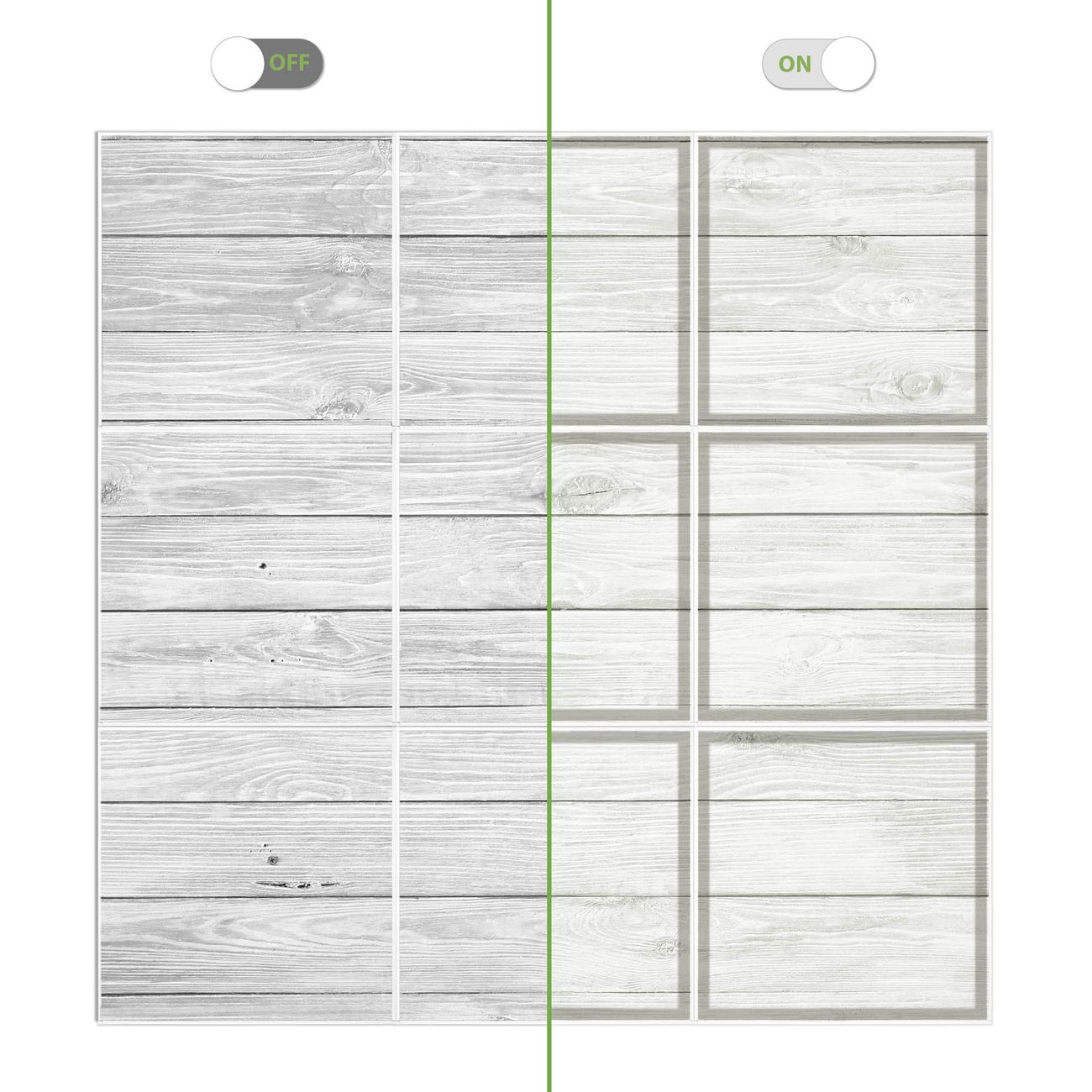Entdecken Sie unsere vielseitigen Lichtdecken, hier in der Größe 186 x 186cm mit dem Motiv Motiv Weiß Gebeizt - Ihre Beleuchtungslösung für jede Umgebung Beleuchten Sie Ihren Raum nicht nur, sondern schaffen Sie Atmosphäre! Die banjado Lichtdecke verwandelt jeden Ort, ob zu Hause, in Praxen, Büros oder Studios in eine Wohlfühloase. Unsere einzelnen Elemente haben eine genormte Einheitsgröße von 62 x 62cm und können somit in jede gängige Rasterdecken verbaut werden. So finden Sie Ihre passende Ausführung: Gern helfen wir Ihnen, die passende Ausführung zu wählen. Hierfür muss die aktuelle Gegebenheit Ihrer Decke oder Wand beachtet werden. Haben Sie bereits eine Rasterdecke (auch Odenwalddecke genannt)? Hier bestellen Sie lediglich das Motiv + Beleuchtungspanel, denn beides wird in die bereits vorhandene Decke eingelegt. Haben Sie eine glatte Decke mit Lichtauslass oder möchten die Lichtdecke an der Wand befestigen? Hier bestellen Sie bitte Motiv + Beleuchtungspanel + Deckenbefestigung, eine Aufbauanleitung liegt immer bei. Die Lichtdecke kann sowohl an der Decke als auch an der Wand montiert werden, perfekt für kreative Lichtakzente oder alternative Beleuchtungslösungen. Haben Sie bereits eine Lichtdecke und möchten nur das Motiv wechseln? Hier bestellen Sie bitte nur Motiv, der Wechsel ist denkbar einfach. Der Aufbau Ihrer banjado Lichtdecke gestaltet sich unkompliziert, dank einer verständlichen Anleitung, die Ihnen Schritt für Schritt durch den Montageprozess hilft. Für die endgültige Installation und den sicheren Anschluss empfehlen wir die Hinzuziehung eines Fachmanns, um die optimale Funktion und Sicherheit Ihrer Beleuchtung zu gewährleisten. Falls Sie einen Fachmann für die Installation benötigen, geben Sie uns gern Bescheid, wir vermitteln Ihnen gern einen geeigneten Ansprechpartner aus Ihrer Nähe. Steuerung: Steigern Sie Ihr Beleuchtungserlebnis mit der nahtlosen Integration in Ihr Smart Home. Durch die Kompatibilität mit der SmartLife App, Alexa und Google Assistant wird Ihr Smartphone zur zentralen Steuerungseinheit. Ihr Handy fungiert hierbei sozusagen als Fernbedienung. Legen Sie individuelle Lichtszenen in der App fest, die bei Aktivierung über den Wand-Ein-/Ausschalter immer wieder abgerufen werden können ohne Handy. Mit der Szenenfunktion in der Smart App können Sie die Beleuchtung personalisieren und steuern, sodass sie auf Ihre individuellen Bedürfnisse, Tagesrhythmus und Stimmung zugeschnitten ist. Beispielsweise können Sie sich in der Morgendämmerung durch ein sanftes Licht wecken lassen oder das Licht der Praxis werktags um 7 Uhr automatisch einschalten lassen. Dieses kann dann natürlich auch zu einer bestimmten Zeit automatisch ausgeschaltet werden. Motivwahl: Diese einzigartige Lichtdecke zeichnet sich durch ihre Fähigkeit aus, die Lichtfarbe je nach gewähltem Motiv anzupassen - ein Baum wirft ein sanftes grünes Licht, während eine Wolkendecke Ihren Raum in ein beruhigendes blaues Leuchten hüllt. Berücksichtigen Sie dies bitte bei Ihrer Motivauswahl. Sie können das Motiv jederzeit ohne großen Aufwand austauschen, ob nach Jahreszeit oder anderem Anlass, unsere Auswahl lässt kaum Wünsche offen. Wir fertigen Ihnen gern eine personalisierte Lichtdecke mit einem eigenen Motiv oder Logo oder Foto, schreiben Sie uns jederzeit an. Technische Daten: Das Motiv ist auf einer 4mm starken Acrylglas Scheibe aufgebracht, das Gesamtgewicht Ihrer Ausführung beträgt 44,4kg. Die Farbtemperatur lässt sich frei einstellen von 3000 bis 6000 Kelvin, damit können Sie stufenlos zwischen warmweiß, neutralweiß und kaltweiß wählen. Die Gesamtleistung bei Ihrer gewählten Ausführung beträgt 360W. Der Lichtstrom beträgt 3600 Lumen, die Nennspannung 230 V. Die Lichtdecke ist mit Schutzart IP20 für den Innenbereich konzipiert und sollte nicht im Nassbereich verwendet werden.