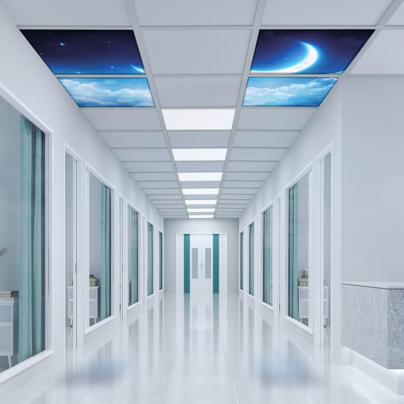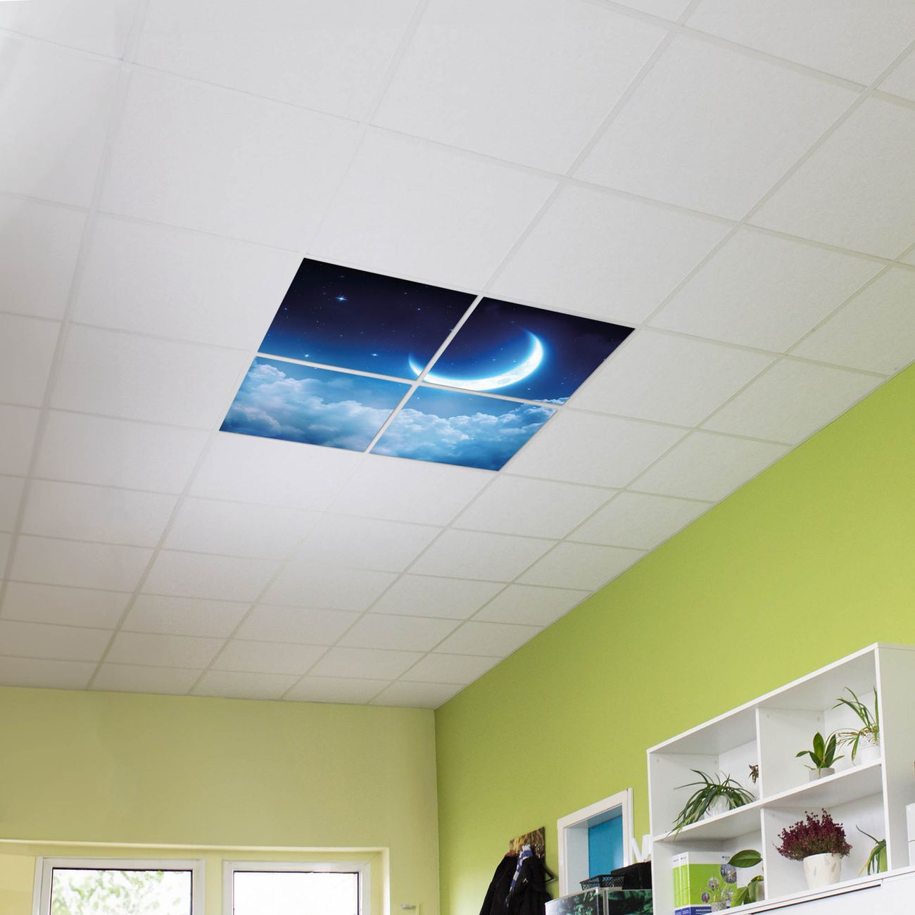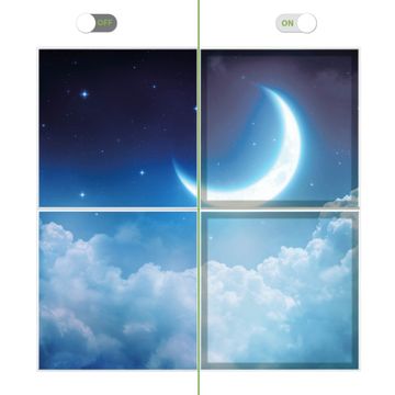 Entdecken Sie unsere vielseitigen Lichtdecken, hier in der Größe 124 x 124cm mit dem Motiv Motiv zunehmender Mond - Ihre Beleuchtungslösung für jede Umgebung Beleuchten Sie Ihren Raum nicht nur, sondern schaffen Sie Atmosphäre! Die banjado Lichtdecke verwandelt jeden Ort, ob zu Hause, in Praxen, Büros oder Studios in eine Wohlfühloase. Unsere einzelnen Elemente haben eine genormte Einheitsgröße von 62 x 62cm und können somit in jede gängige Rasterdecken verbaut werden. So finden Sie Ihre passende Ausführung: Gern helfen wir Ihnen, die passende Ausführung zu wählen. Hierfür muss die aktuelle Gegebenheit Ihrer Decke oder Wand beachtet werden. Haben Sie bereits eine Rasterdecke (auch Odenwalddecke genannt)? Hier bestellen Sie lediglich das Motiv + Beleuchtungspanel, denn beides wird in die bereits vorhandene Decke eingelegt. Haben Sie eine glatte Decke mit Lichtauslass oder möchten die Lichtdecke an der Wand befestigen? Hier bestellen Sie bitte Motiv + Beleuchtungspanel + Deckenbefestigung, eine Aufbauanleitung liegt immer bei. Die Lichtdecke kann sowohl an der Decke als auch an der Wand montiert werden, perfekt für kreative Lichtakzente oder alternative Beleuchtungslösungen. Haben Sie bereits eine Lichtdecke und möchten nur das Motiv wechseln? Hier bestellen Sie bitte nur Motiv, der Wechsel ist denkbar einfach. Der Aufbau Ihrer banjado Lichtdecke gestaltet sich unkompliziert, dank einer verständlichen Anleitung, die Ihnen Schritt für Schritt durch den Montageprozess hilft. Für die endgültige Installation und den sicheren Anschluss empfehlen wir die Hinzuziehung eines Fachmanns, um die optimale Funktion und Sicherheit Ihrer Beleuchtung zu gewährleisten. Falls Sie einen Fachmann für die Installation benötigen, geben Sie uns gern Bescheid, wir vermitteln Ihnen gern einen geeigneten Ansprechpartner aus Ihrer Nähe. Steuerung: Steigern Sie Ihr Beleuchtungserlebnis mit der nahtlosen Integration in Ihr Smart Home. Durch die Kompatibilität mit der SmartLife App, Alexa und Google Assistant wird Ihr Smartphone zur zentralen Steuerungseinheit. Ihr Handy fungiert hierbei sozusagen als Fernbedienung. Legen Sie individuelle Lichtszenen in der App fest, die bei Aktivierung über den Wand-Ein-/Ausschalter immer wieder abgerufen werden können ohne Handy. Mit der Szenenfunktion in der Smart App können Sie die Beleuchtung personalisieren und steuern, sodass sie auf Ihre individuellen Bedürfnisse, Tagesrhythmus und Stimmung zugeschnitten ist. Beispielsweise können Sie sich in der Morgendämmerung durch ein sanftes Licht wecken lassen oder das Licht der Praxis werktags um 7 Uhr automatisch einschalten lassen. Dieses kann dann natürlich auch zu einer bestimmten Zeit automatisch ausgeschaltet werden. Motivwahl: Diese einzigartige Lichtdecke zeichnet sich durch ihre Fähigkeit aus, die Lichtfarbe je nach gewähltem Motiv anzupassen - ein Baum wirft ein sanftes grünes Licht, während eine Wolkendecke Ihren Raum in ein beruhigendes blaues Leuchten hüllt. Berücksichtigen Sie dies bitte bei Ihrer Motivauswahl. Sie können das Motiv jederzeit ohne großen Aufwand austauschen, ob nach Jahreszeit oder anderem Anlass, unsere Auswahl lässt kaum Wünsche offen. Wir fertigen Ihnen gern eine personalisierte Lichtdecke mit einem eigenen Motiv oder Logo oder Foto, schreiben Sie uns jederzeit an. Technische Daten: Das Motiv ist auf einer 4mm starken Acrylglas Scheibe aufgebracht, das Gesamtgewicht Ihrer Ausführung beträgt 17,7kg. Die Farbtemperatur lässt sich frei einstellen von 3000 bis 6000 Kelvin, damit können Sie stufenlos zwischen warmweiß, neutralweiß und kaltweiß wählen. Die Gesamtleistung bei Ihrer gewählten Ausführung beträgt 160W. Der Lichtstrom beträgt 3600 Lumen, die Nennspannung 230 V. Die Lichtdecke ist mit Schutzart IP20 für den Innenbereich konzipiert und sollte nicht im Nassbereich verwendet werden.