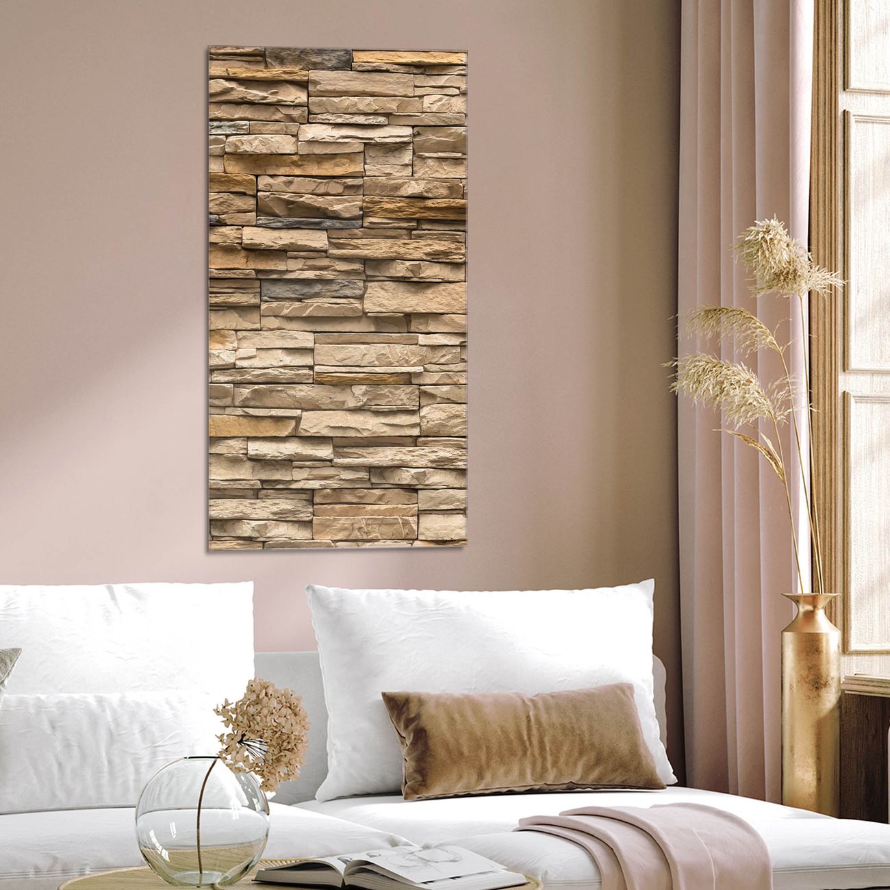 Brillantes Glasbild im Hochformat