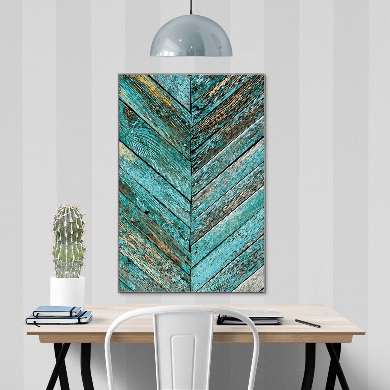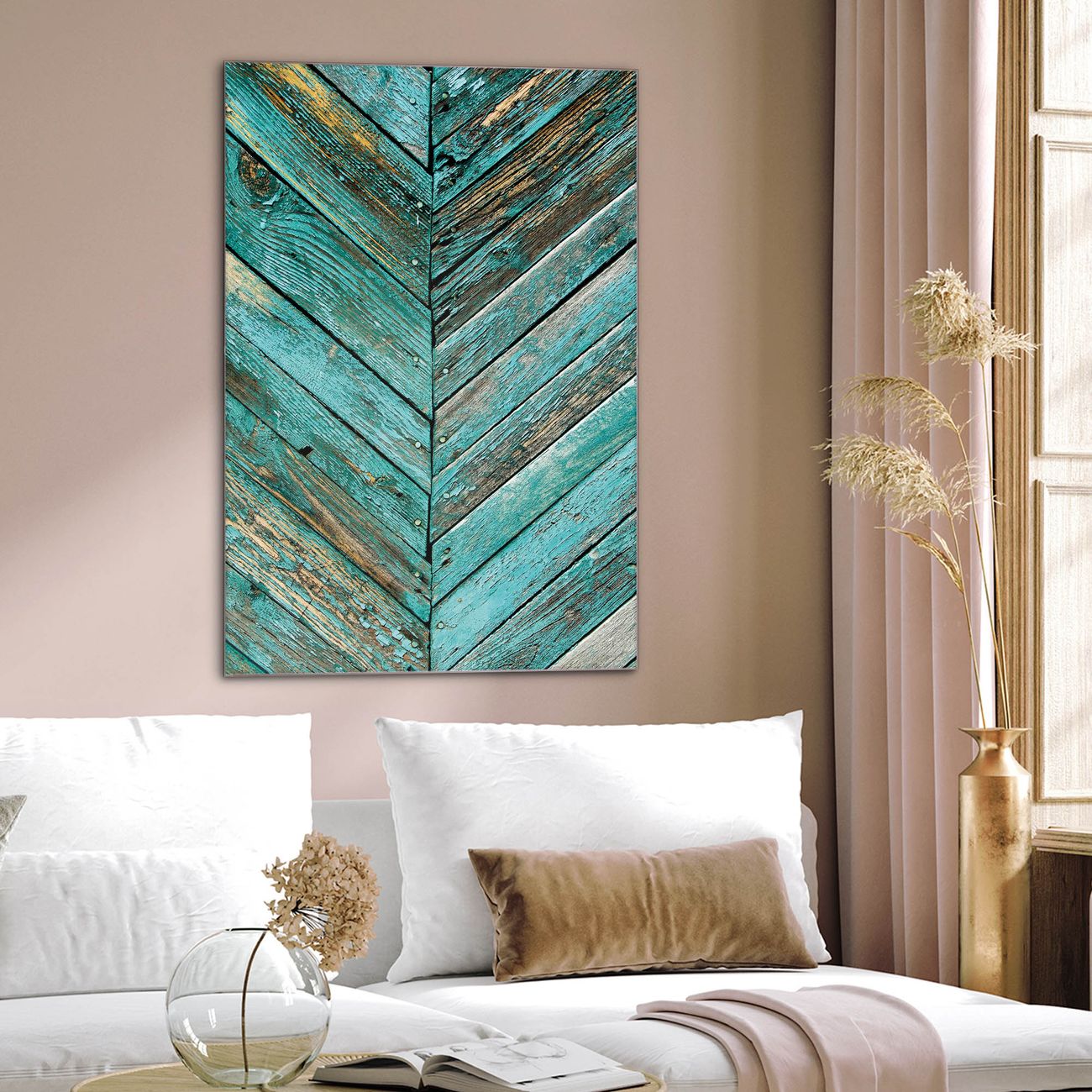 Brillantes Glasbild im Hochformat Altes Holz Blau