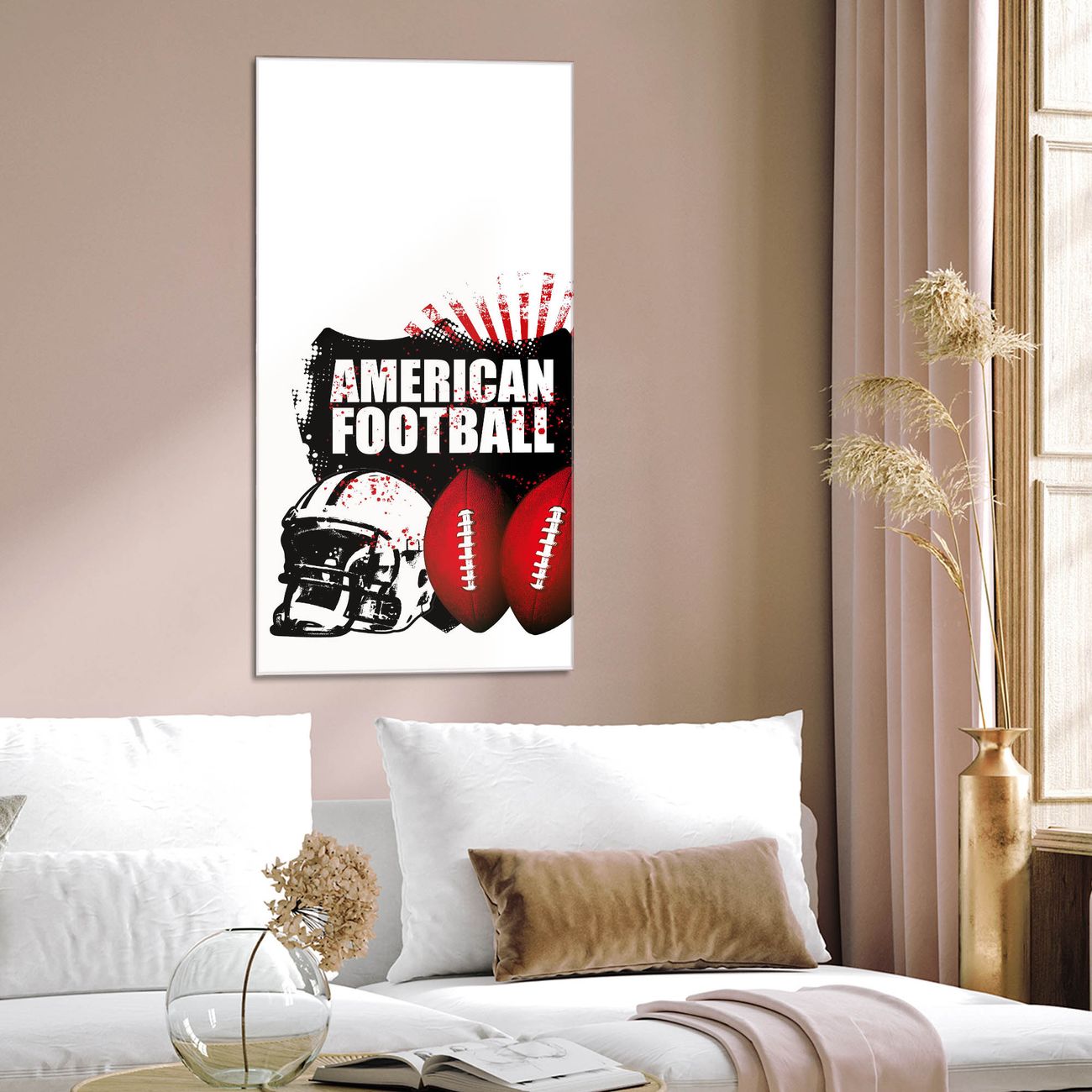 Brillantes Glasbild im Hochformat American Football