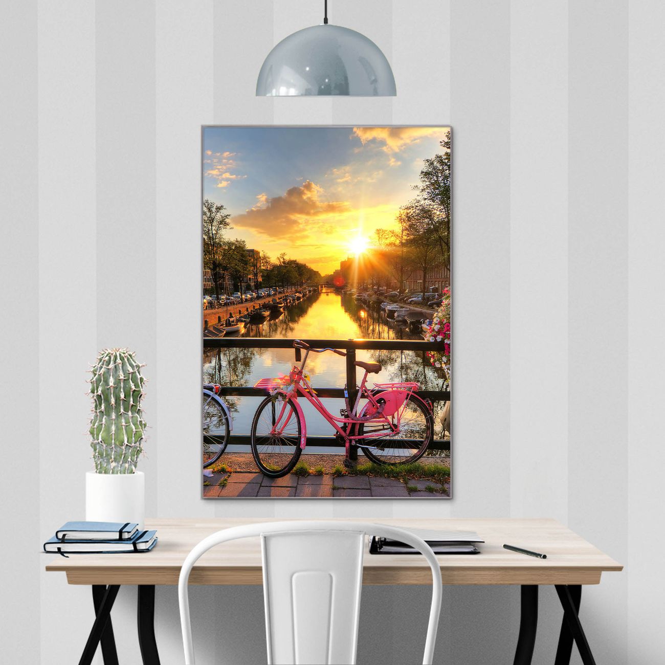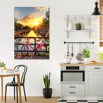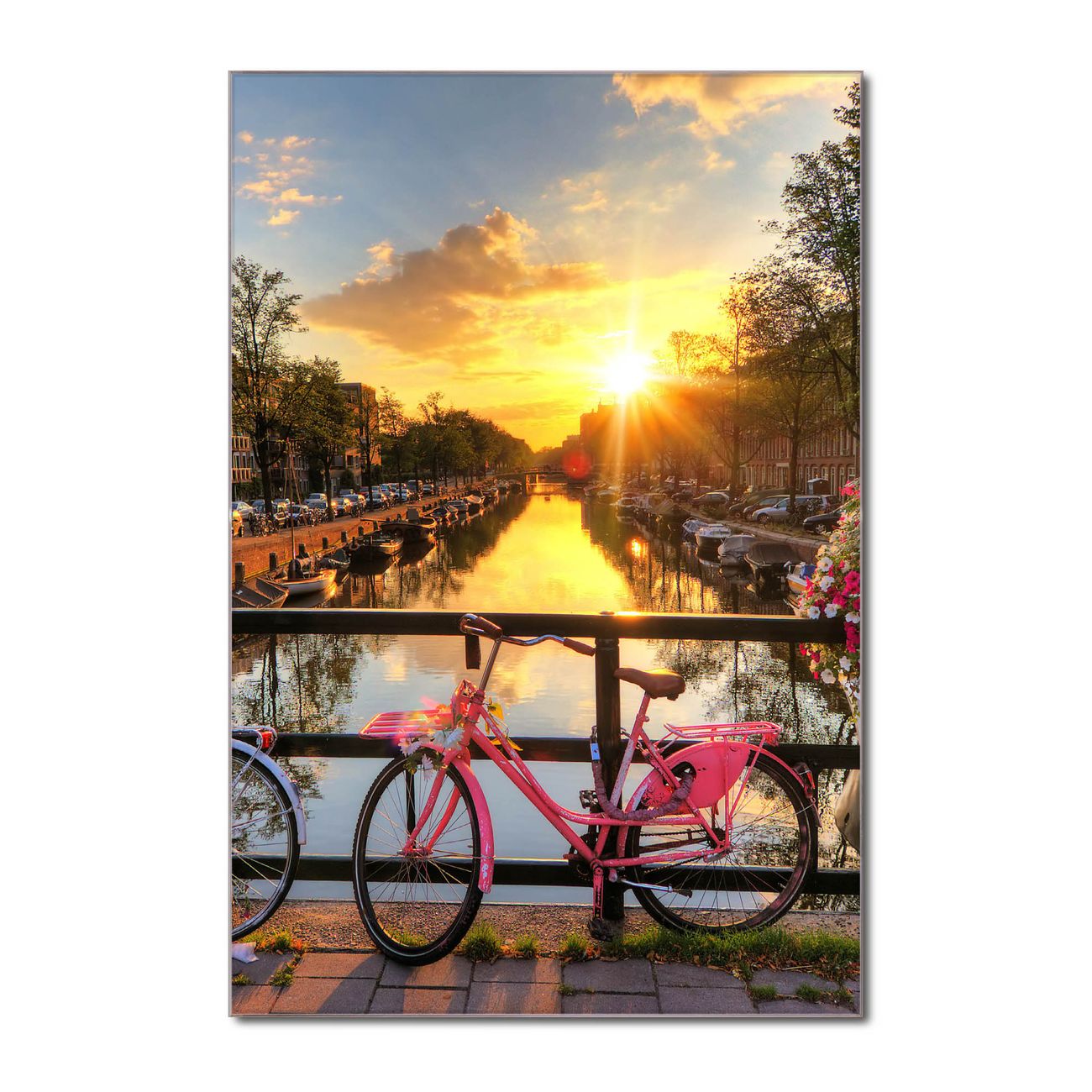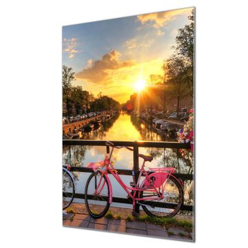 Brillantes Glasbild im Hochformat Amsterdam Mit Rad
