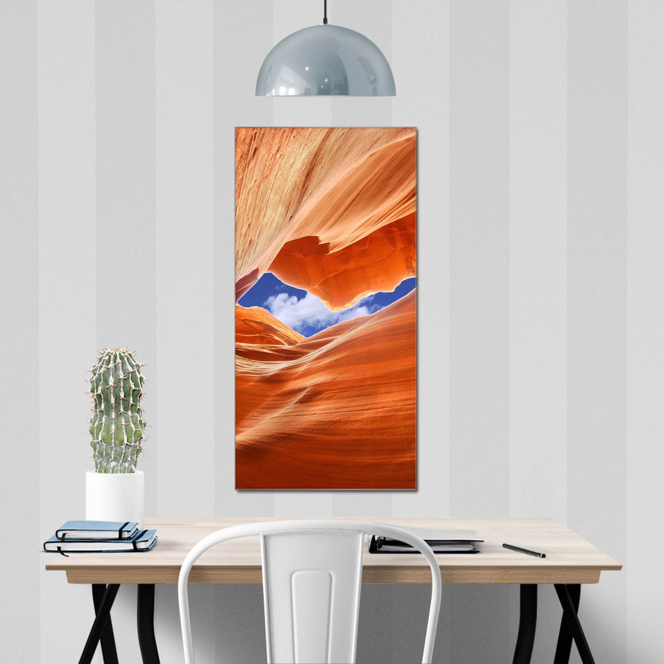 Unsere brillanten Glasbilder im Hochformat von banjado mit Motiv Antelope Canyon 3 sind der absolute Hingucker! Unsere Banjado Glasbilder sind sehr begehrt, weil sie top verarbeitet sind und sich ganz leicht montieren lassen. Schon mit wenigen Handgriffen hängen sie an der Wand und strahlen mit höchster brillianz. Durch die Ramenlose Herstellung schwebt das Echtglasbild förmlich an der Wand. Das Motiv erscheint besonders ausdrucksstark, hochwertig und ist hinter dem Echtglas geschützt.