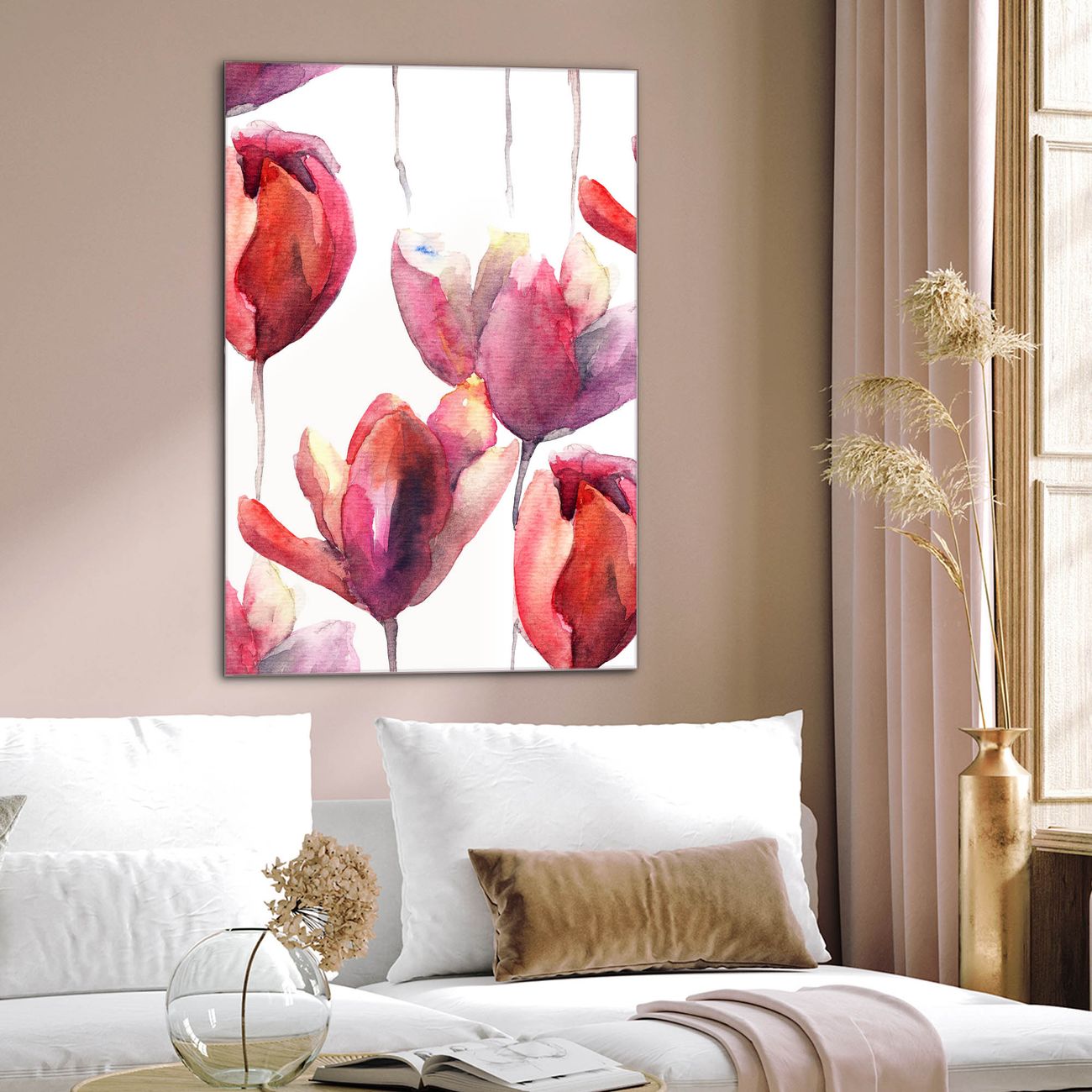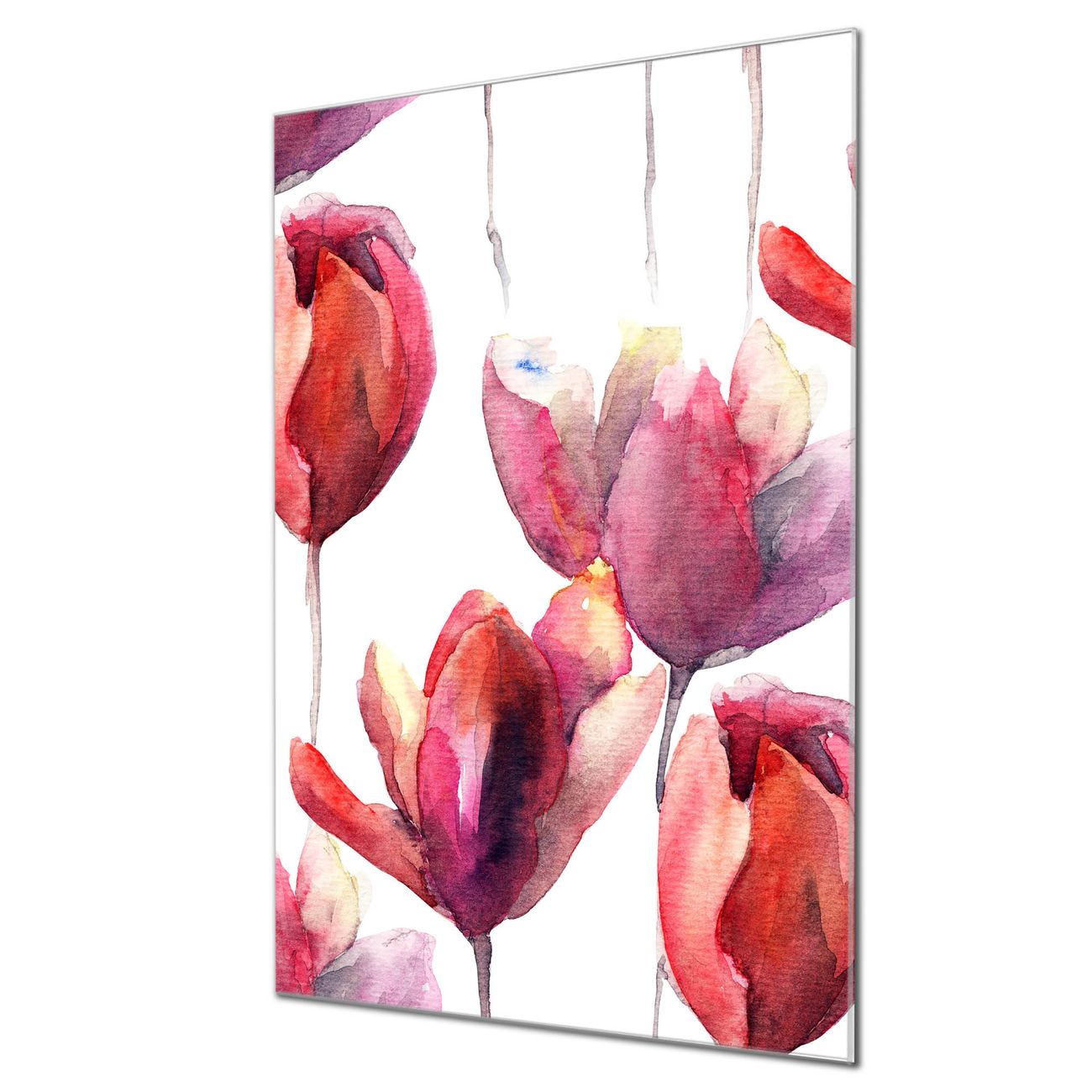 Brillantes Glasbild im Hochformat Aquarell Tulpen