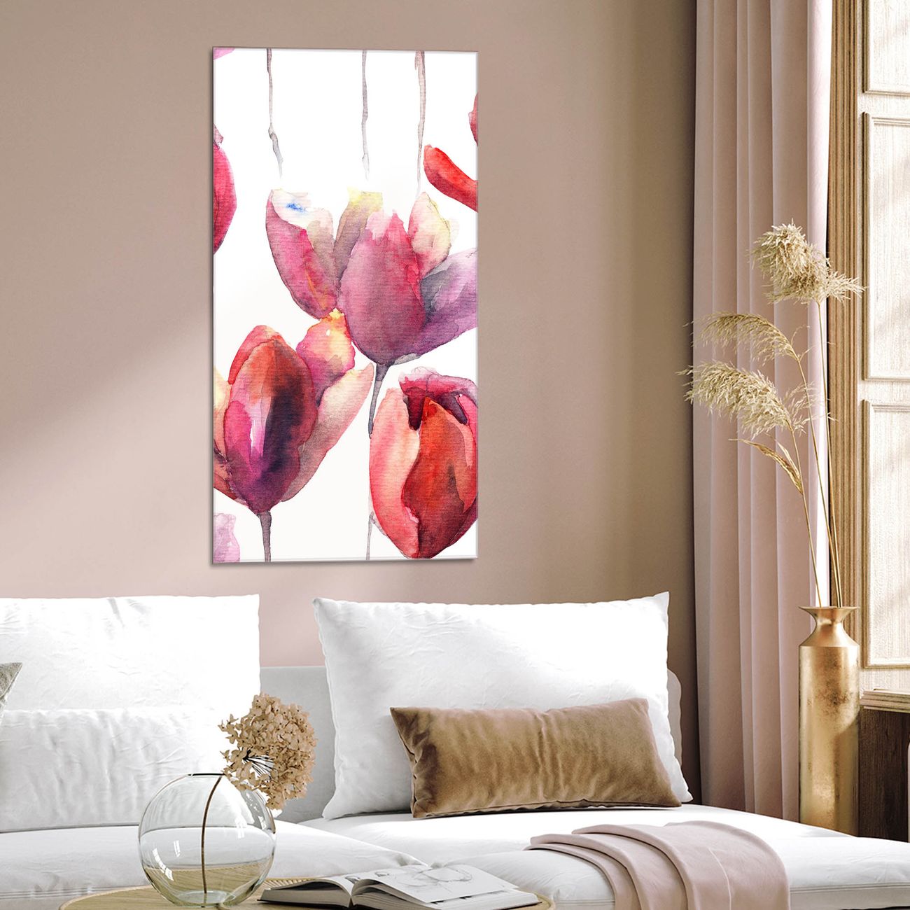 Unsere brillanten Glasbilder im Hochformat von banjado mit Motiv Aquarell Tulpen sind der absolute Hingucker! Unsere Banjado Glasbilder sind sehr begehrt, weil sie top verarbeitet sind und sich ganz leicht montieren lassen. Schon mit wenigen Handgriffen hängen sie an der Wand und strahlen mit höchster brillianz. Durch die Ramenlose Herstellung schwebt das Echtglasbild förmlich an der Wand. Das Motiv erscheint besonders ausdrucksstark und hochwertig und ist hinter dem Echtglas geschützt.