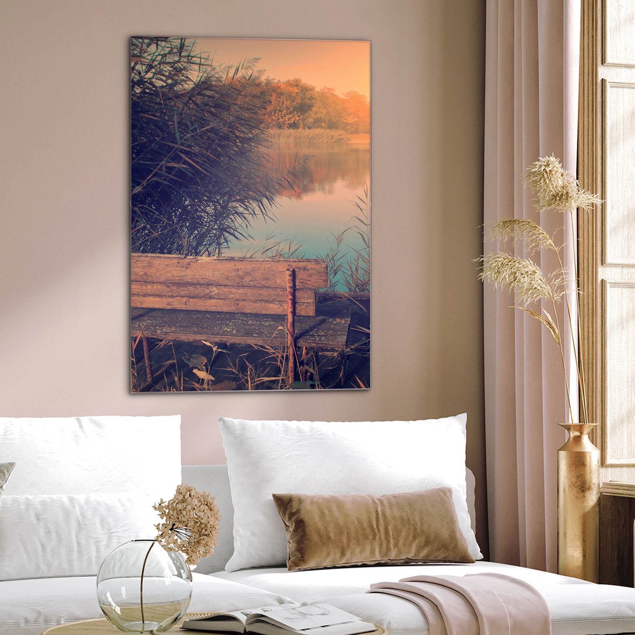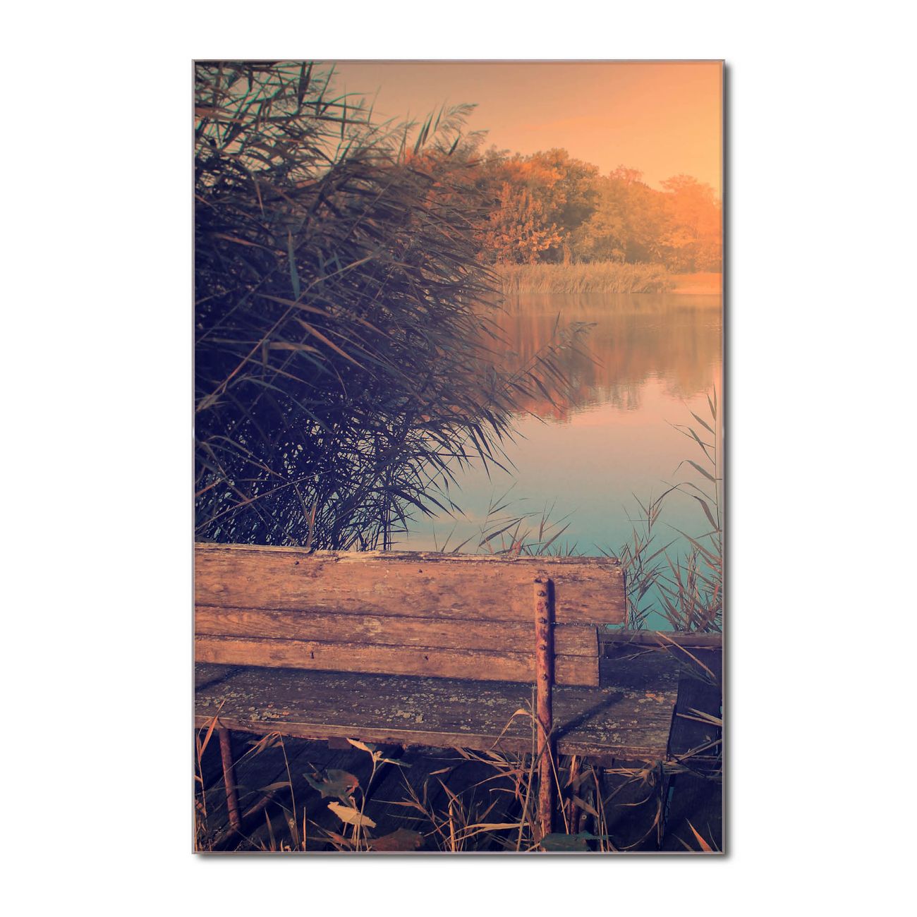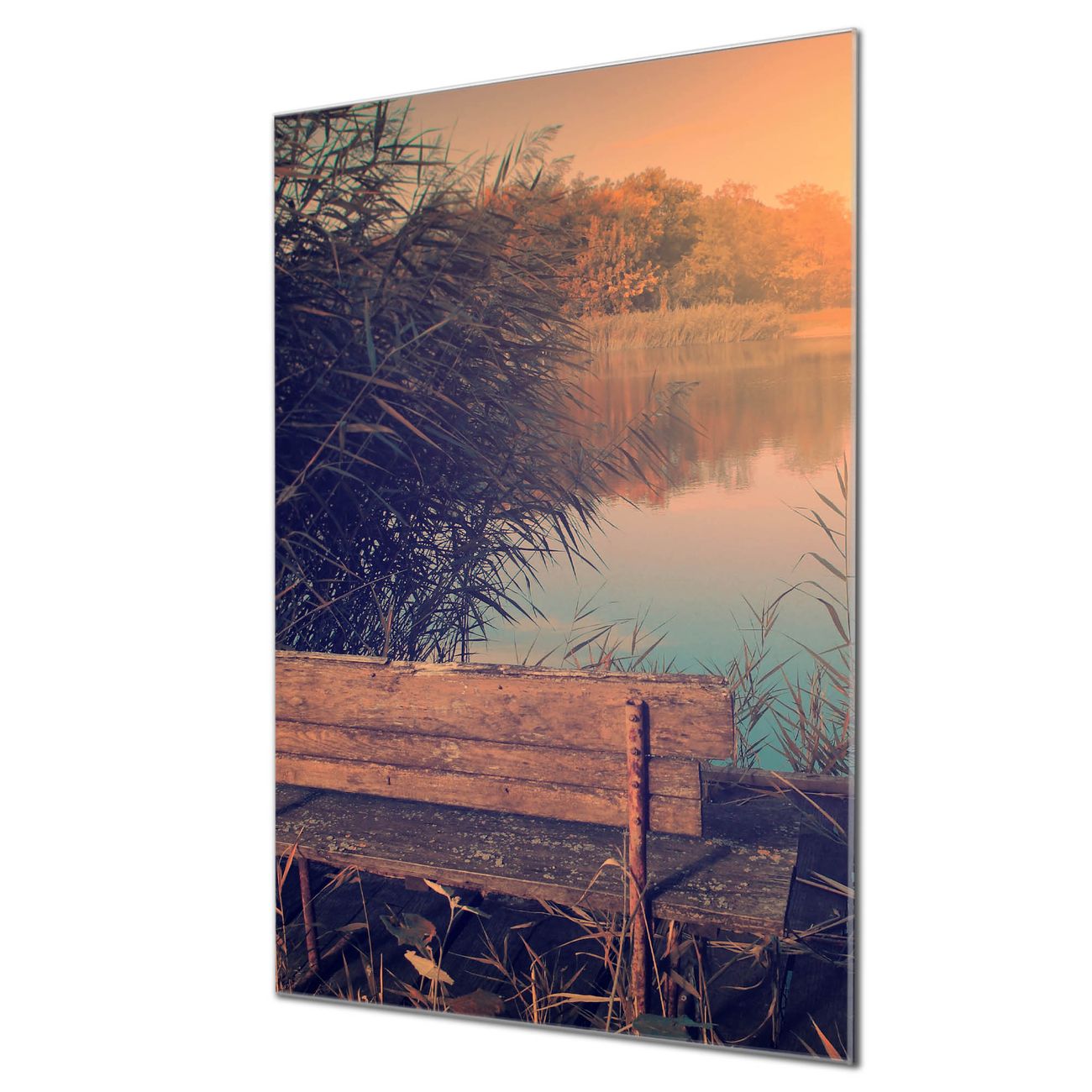 Brillantes Glasbild im Hochformat Bank Am See