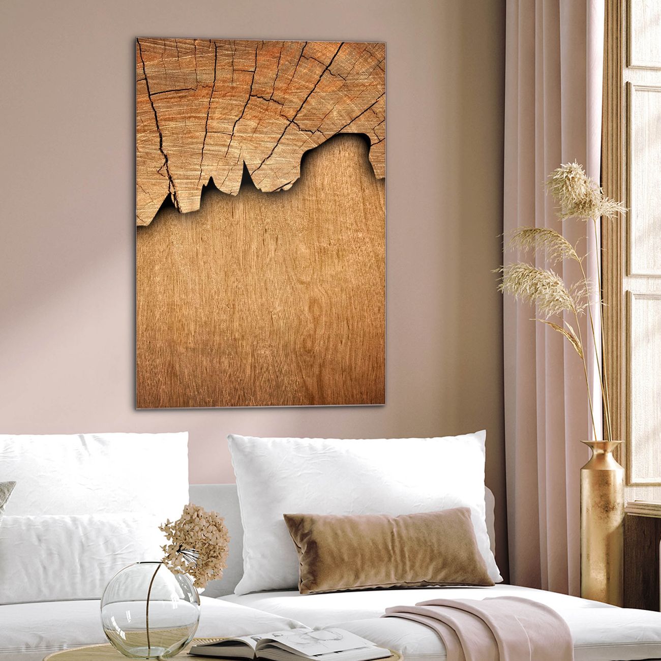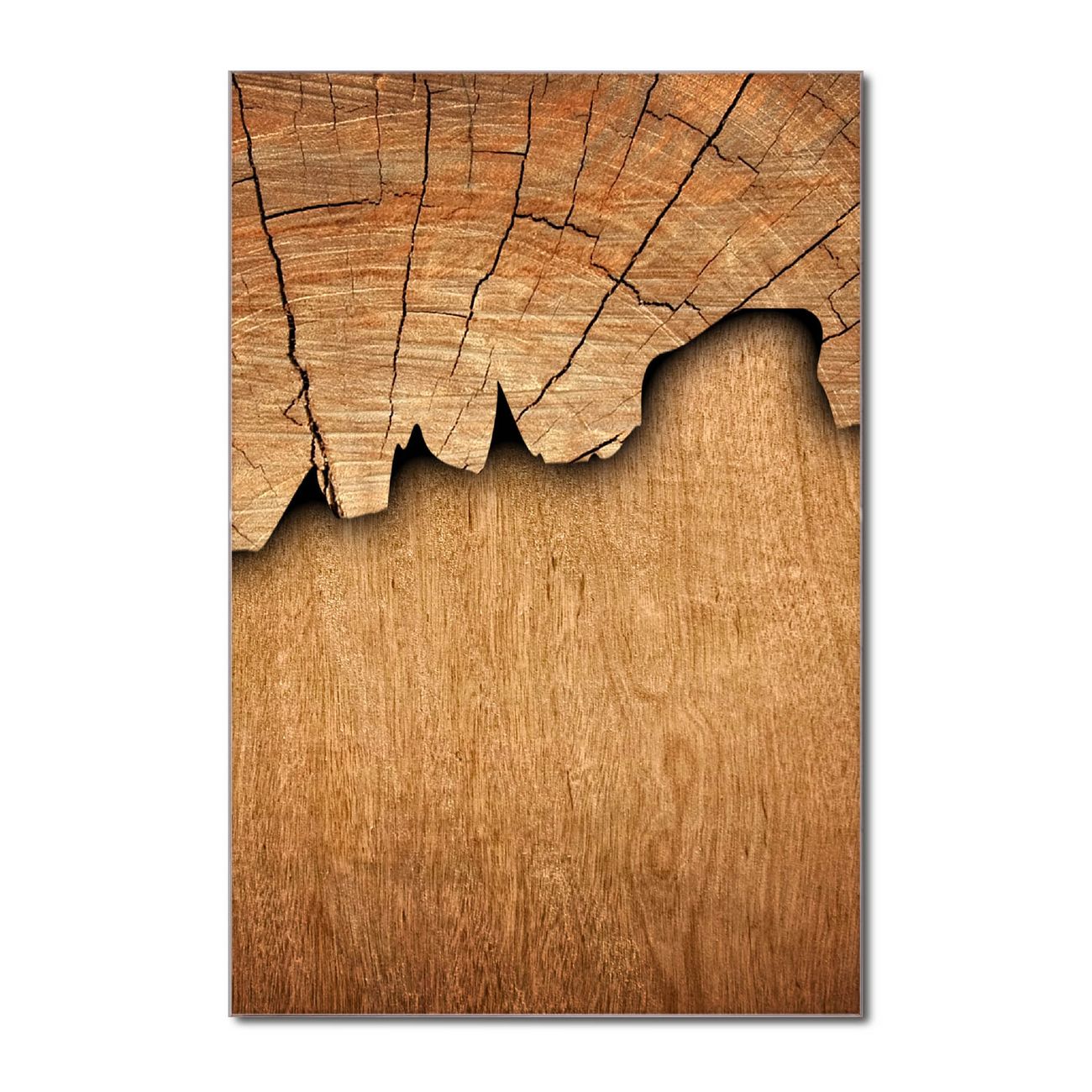 Brillantes Glasbild im Hochformat Baumscheibe