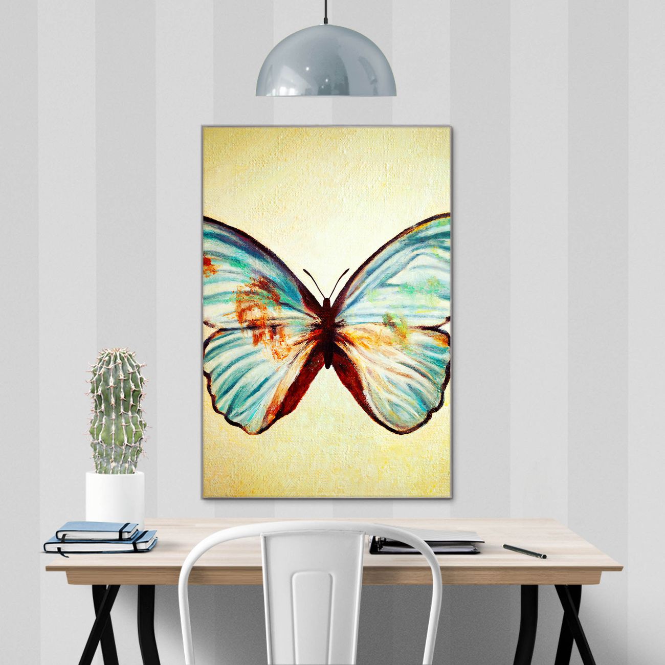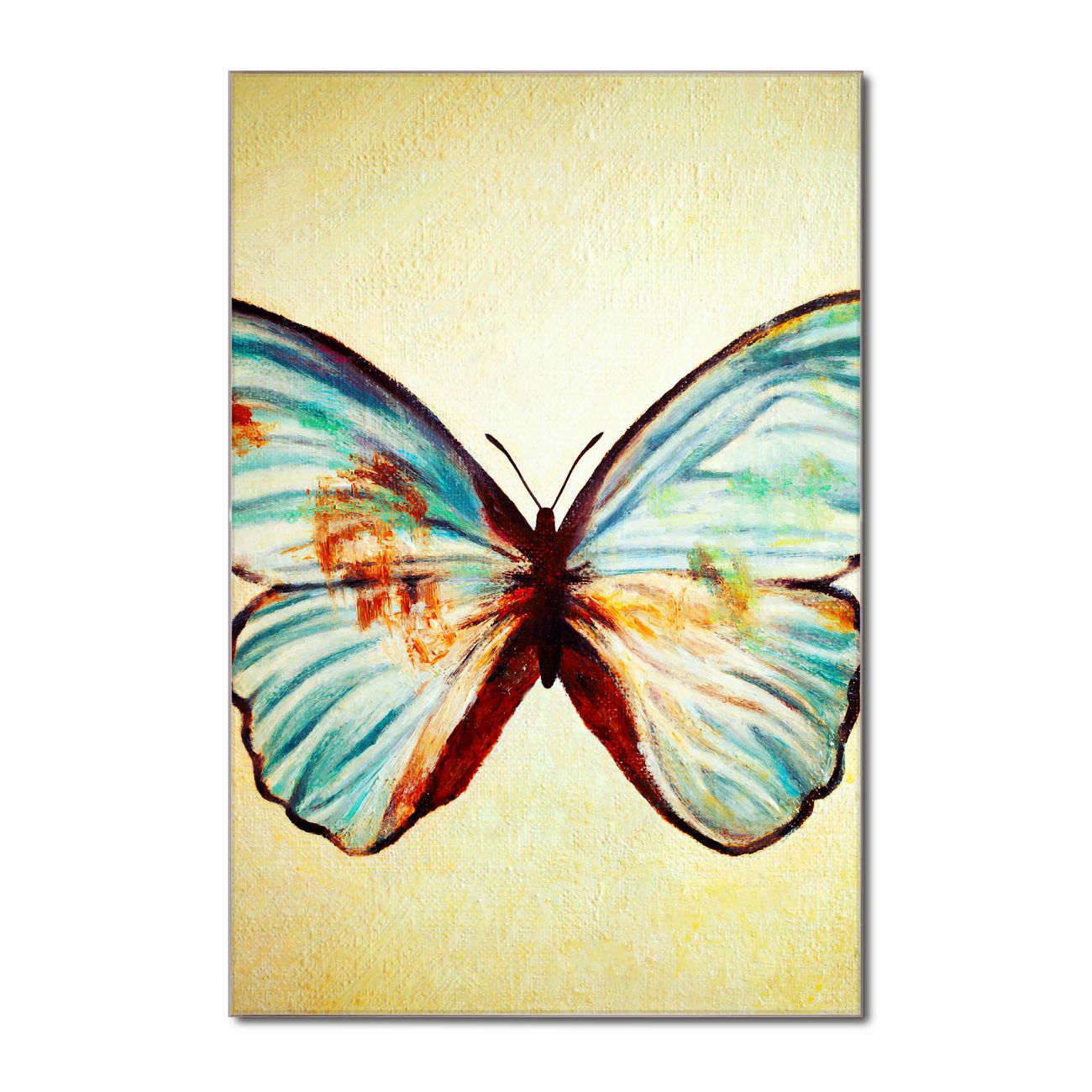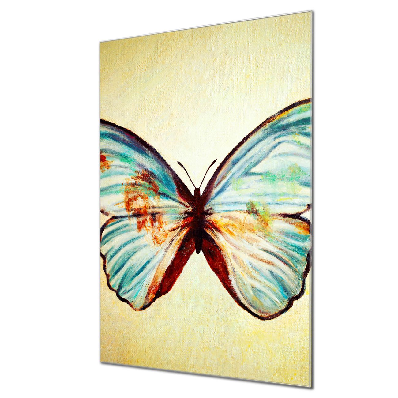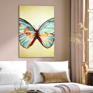 Brillantes Glasbild im Hochformat Blauer Falter