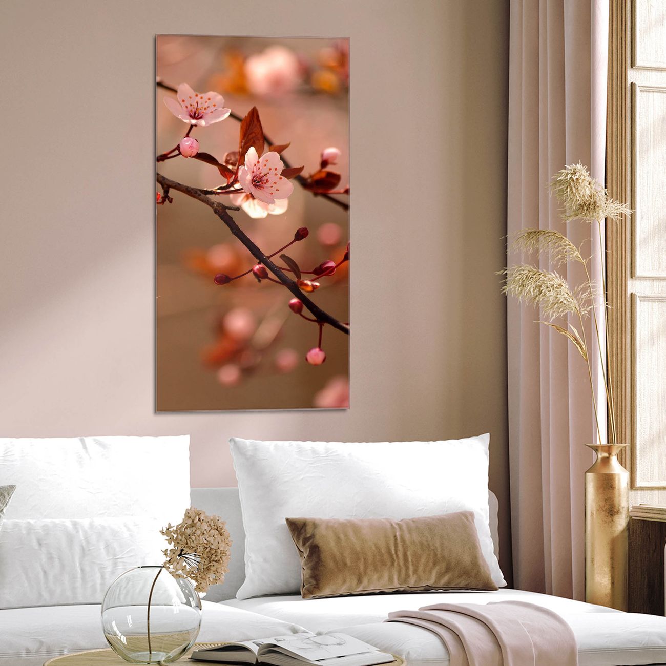 Unsere brillanten Glasbilder im Hochformat von banjado mit Motiv Blühender Kirschzweig sind der absolute Hingucker! Unsere Banjado Glasbilder sind sehr begehrt, weil sie top verarbeitet sind und sich ganz leicht montieren lassen. Schon mit wenigen Handgriffen hängen sie an der Wand und strahlen mit höchster brillianz. Durch die Ramenlose Herstellung schwebt das Echtglasbild förmlich an der Wand. Das Motiv erscheint besonders ausdrucksstark und hochwertig und ist hinter dem Echtglas geschützt.
