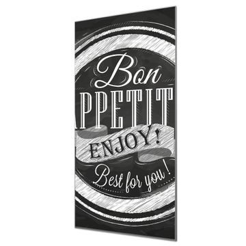 Unsere brillanten Glasbilder im Hochformat von banjado mit Motiv Bon Appetit sind der absolute Hingucker! Unsere Banjado Glasbilder sind sehr begehrt, weil sie top verarbeitet sind und sich ganz leicht montieren lassen. Schon mit wenigen Handgriffen hängen sie an der Wand und strahlen mit höchster brillianz. Durch die Ramenlose Herstellung schwebt das Echtglasbild förmlich an der Wand. Das Motiv erscheint besonders ausdrucksstark und hochwertig und ist hinter dem Echtglas geschützt.