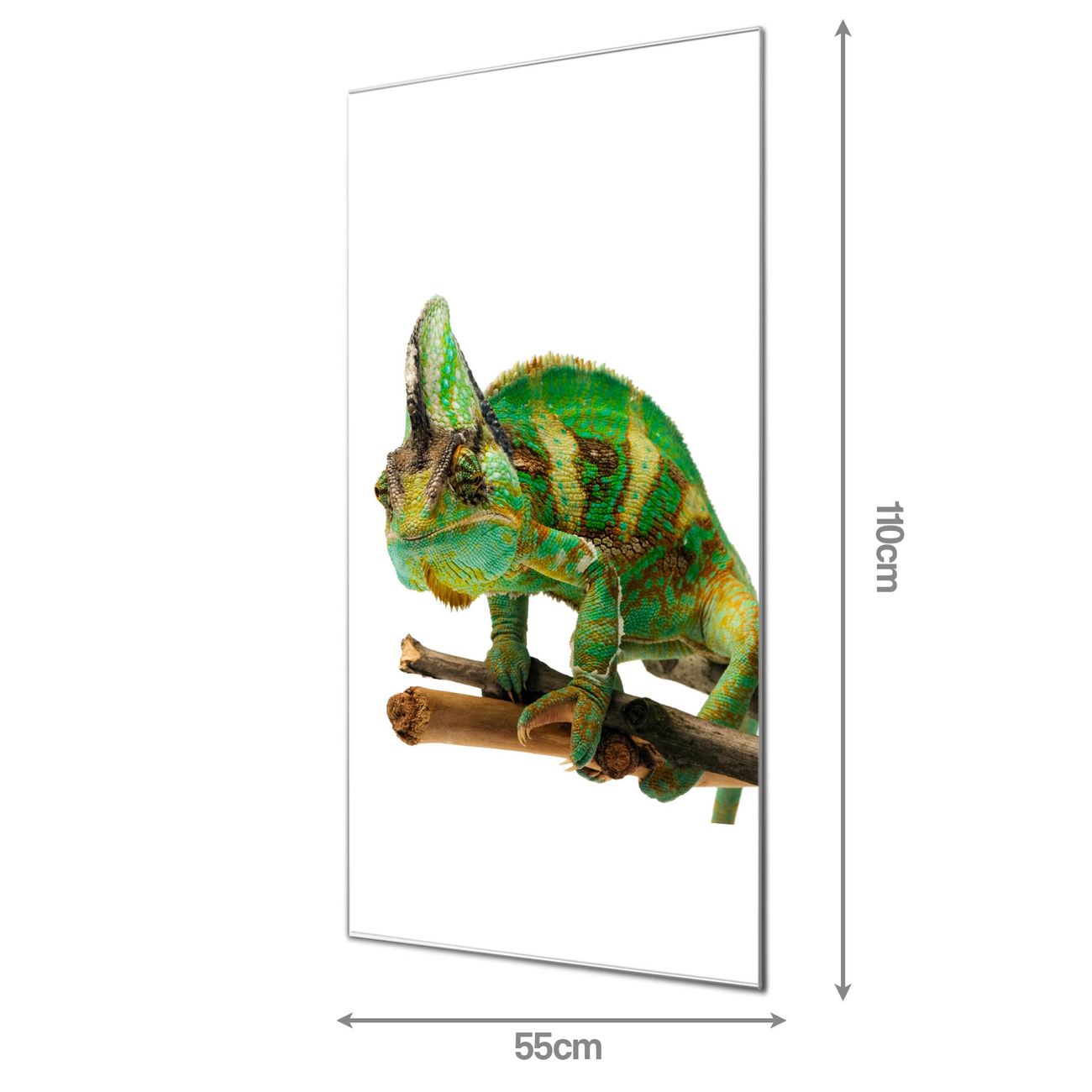 Brillantes Glasbild im Hochformat Chamäleon