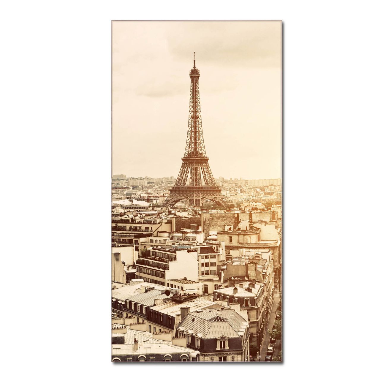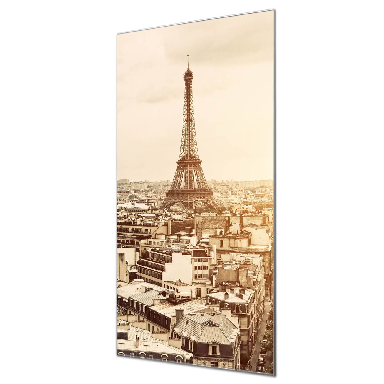 Material  4mm Sicherheitsglas mit Metallrückwand Eigenschaften  farbbrillant, kratzfest, rahmenlos Maße  60x120x0,6cm, 10,80 kg schwer Motiv  Nummer 11406 Dächer Von Paris