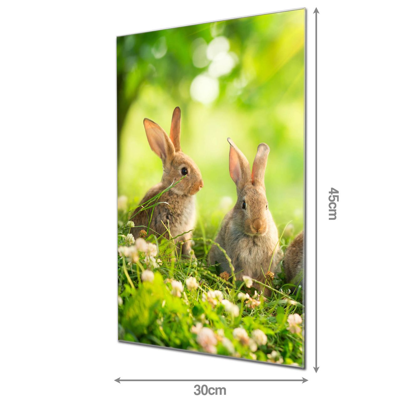 Unsere brillanten Glasbilder im Hochformat von banjado mit Motiv Drei Hasen sind der absolute Hingucker! Unsere Banjado Glasbilder sind sehr begehrt, weil sie top verarbeitet sind und sich ganz leicht montieren lassen. Schon mit wenigen Handgriffen hängen sie an der Wand und strahlen mit höchster brillianz. Durch die Ramenlose Herstellung schwebt das Echtglasbild förmlich an der Wand. Das Motiv erscheint besonders ausdrucksstark, hochwertig und ist hinter dem Echtglas geschützt.