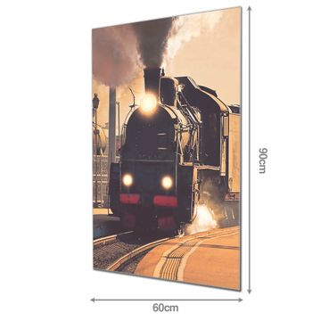 Brillantes Glasbild im Hochformat Einfahrender Zug