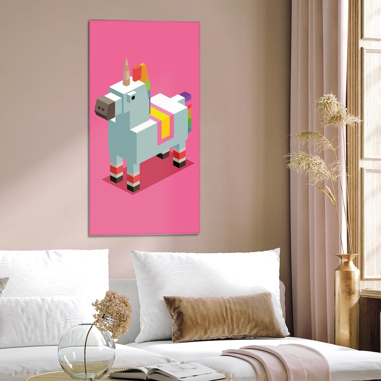 Unsere brillanten Glasbilder im Hochformat von banjado mit Motiv Einhorn Block sind der absolute Hingucker! Unsere Banjado Glasbilder sind sehr begehrt, weil sie top verarbeitet sind und sich ganz leicht montieren lassen. Schon mit wenigen Handgriffen hängen sie an der Wand und strahlen mit höchster brillianz. Durch die Ramenlose Herstellung schwebt das Echtglasbild förmlich an der Wand. Das Motiv erscheint besonders ausdrucksstark und hochwertig und ist hinter dem Echtglas geschützt.