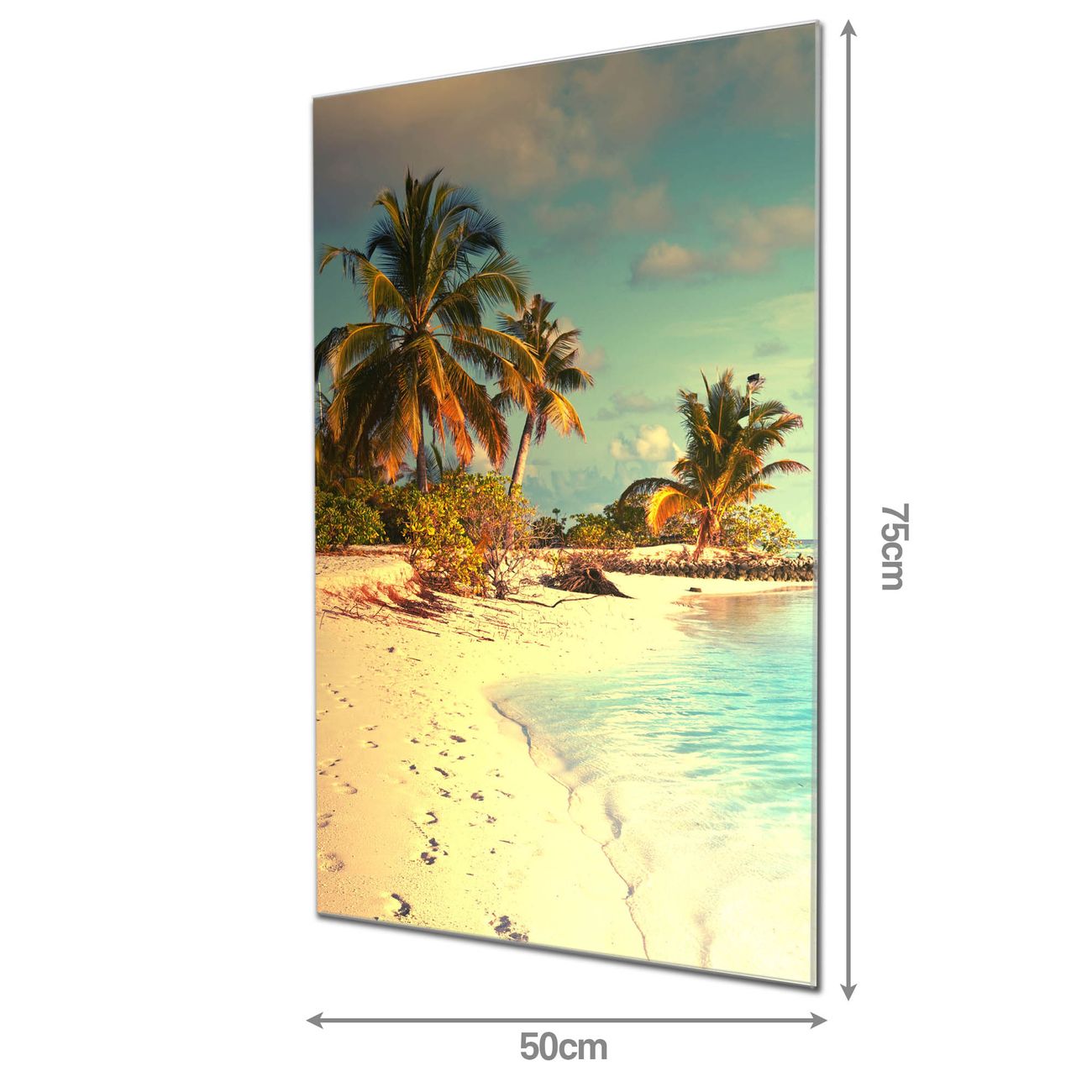 Material  4mm Sicherheitsglas mit Metallrückwand Eigenschaften  farbbrillant, kratzfest, rahmenlos Maße  50x75x0,6cm, 5,63 kg schwer Motiv  Nummer 11723 Einsame Insel