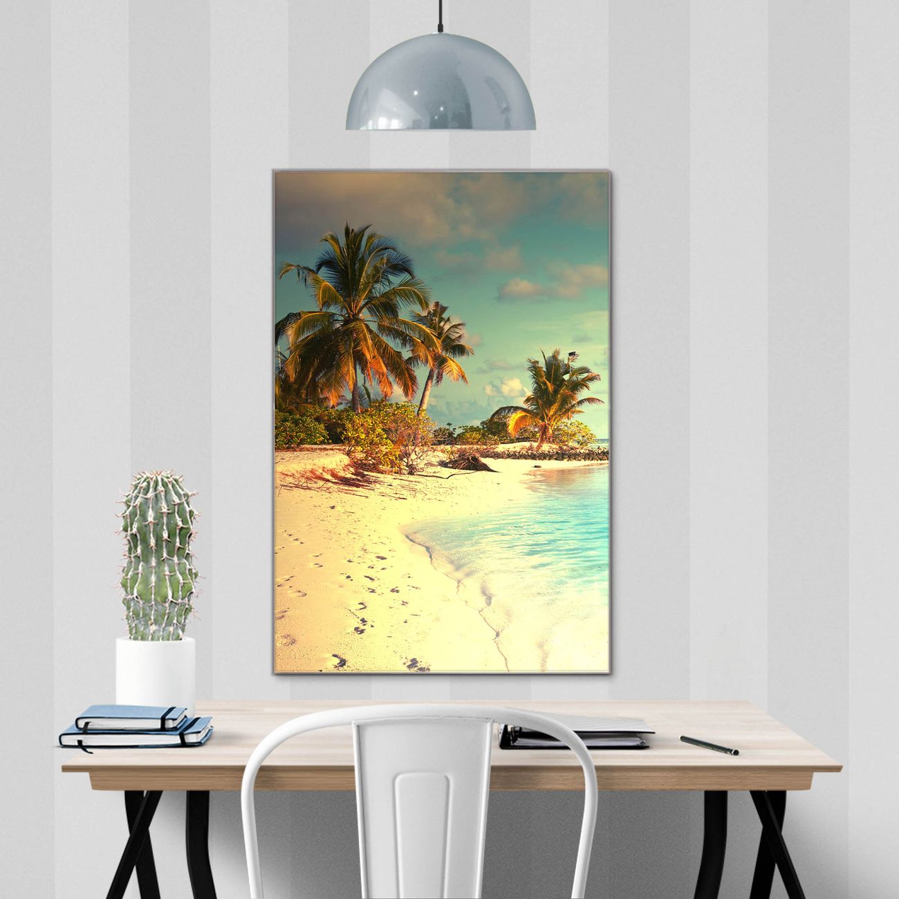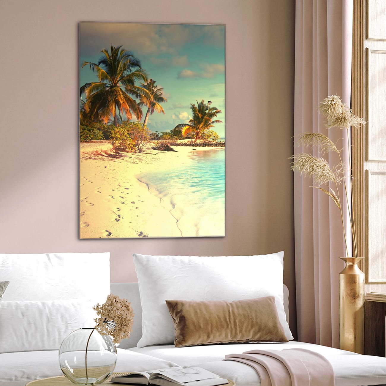 Unsere brillanten Glasbilder im Hochformat von banjado mit Motiv Einsame Insel sind der absolute Hingucker! Unsere Banjado Glasbilder sind sehr begehrt, weil sie top verarbeitet sind und sich ganz leicht montieren lassen. Schon mit wenigen Handgriffen hängen sie an der Wand und strahlen mit höchster brillianz. Durch die Ramenlose Herstellung schwebt das Echtglasbild förmlich an der Wand. Das Motiv erscheint besonders ausdrucksstark, hochwertig und ist hinter dem Echtglas geschützt.