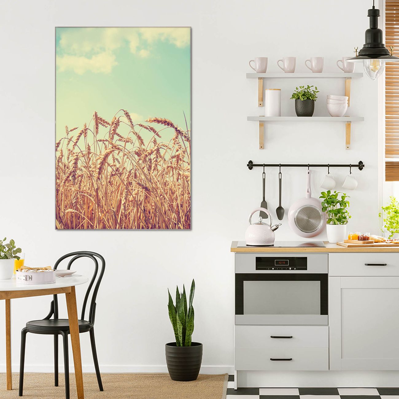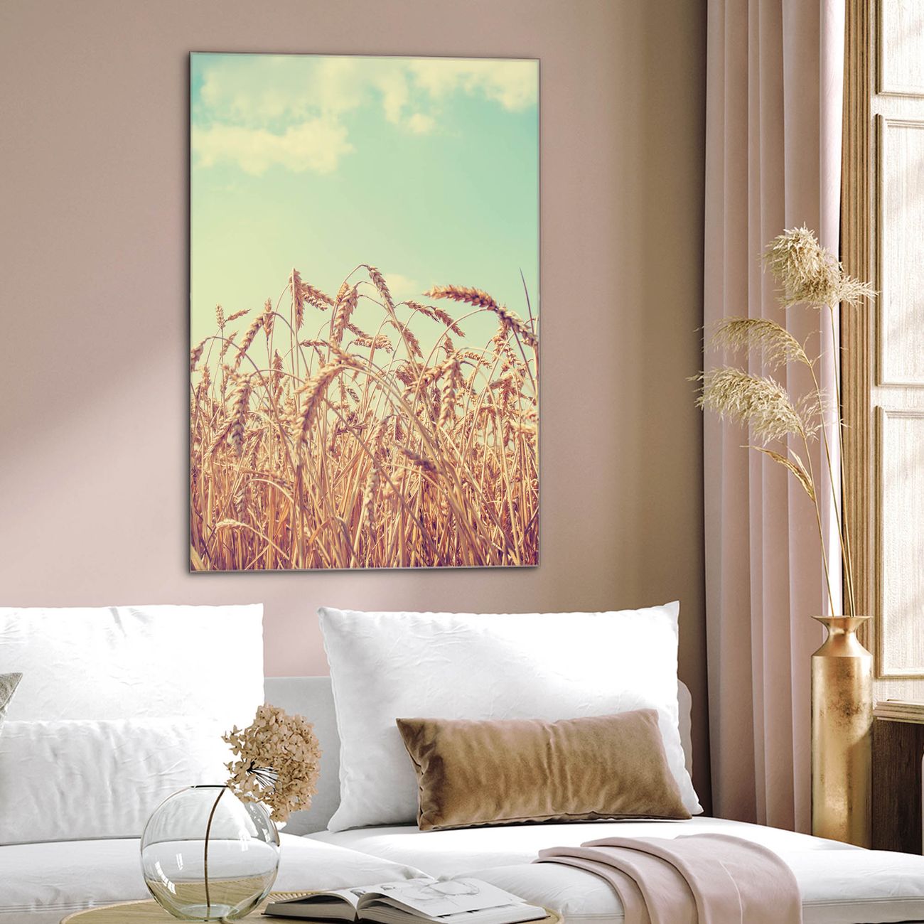 Unsere brillanten Glasbilder im Hochformat von banjado mit Motiv Erntezeit sind der absolute Hingucker! Unsere Banjado Glasbilder sind sehr begehrt, weil sie top verarbeitet sind und sich ganz leicht montieren lassen. Schon mit wenigen Handgriffen hängen sie an der Wand und strahlen mit höchster brillianz. Durch die Ramenlose Herstellung schwebt das Echtglasbild förmlich an der Wand. Das Motiv erscheint besonders ausdrucksstark, hochwertig und ist hinter dem Echtglas geschützt.